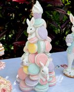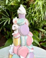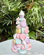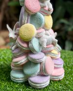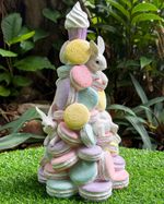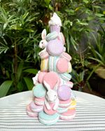 Árvore em resina macarrons com coelhos e glitter.