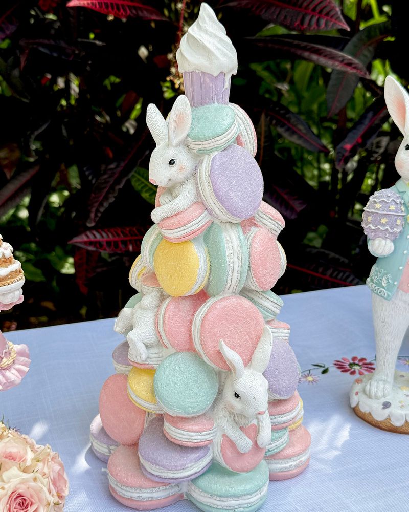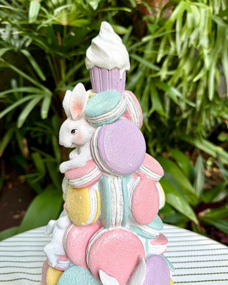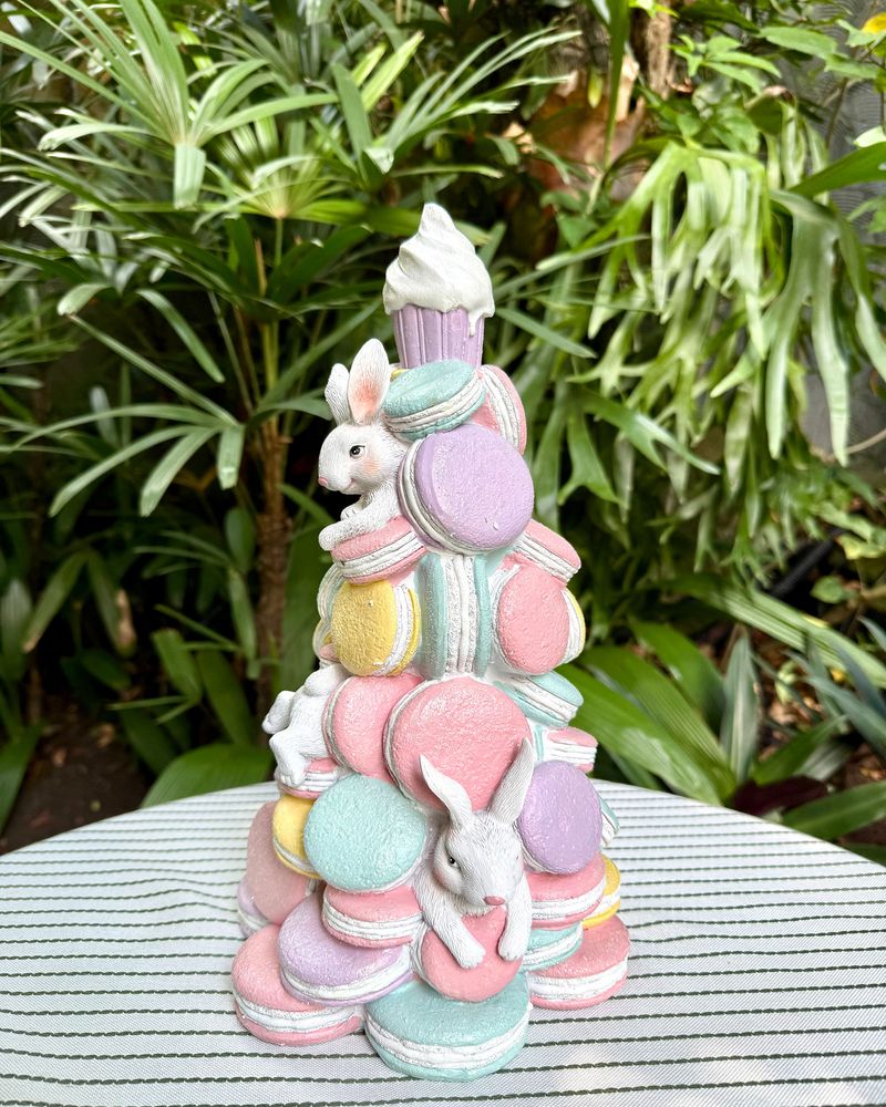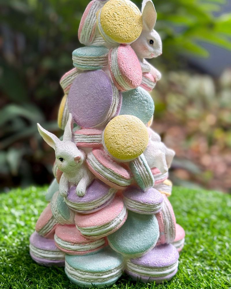 Árvore resina 36cm macarrons com coelhos Páscoa 2026