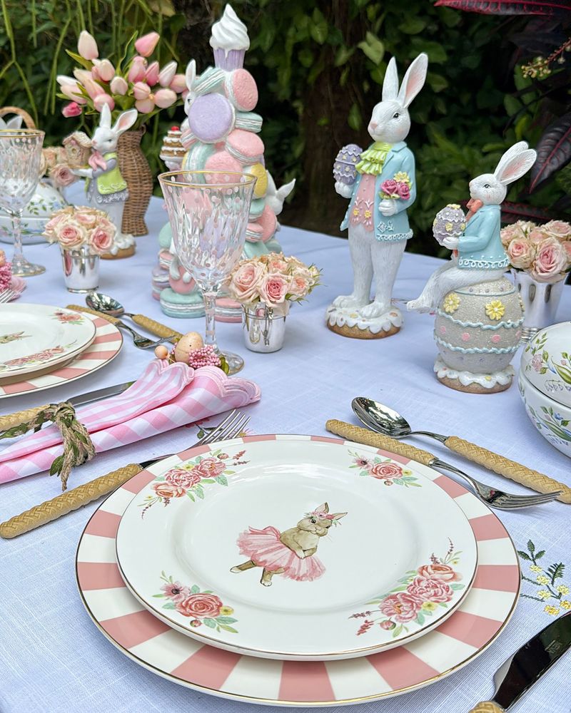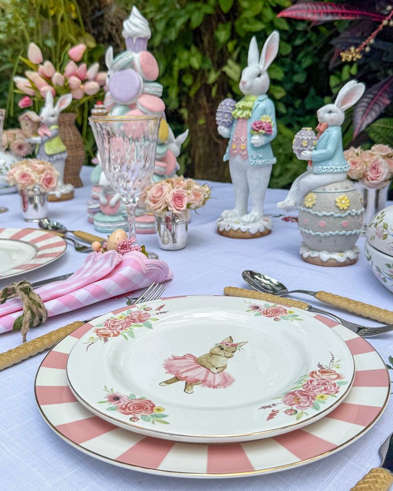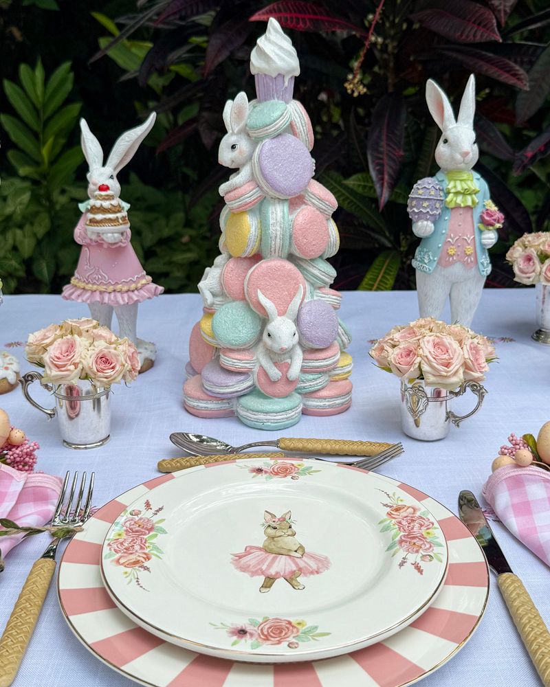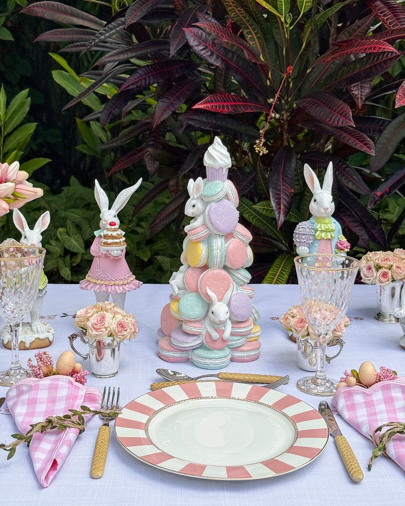 Árvore resina 36cm macarrons com coelhos Páscoa 2026