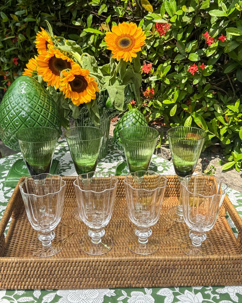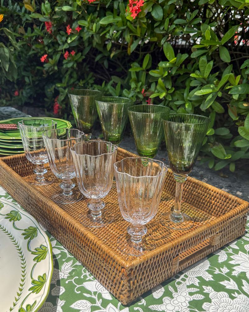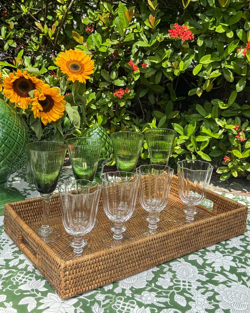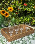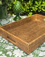 Bandeja retangular em rattan.