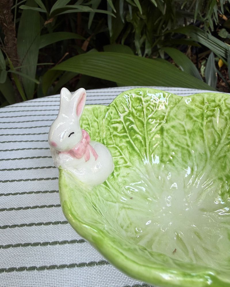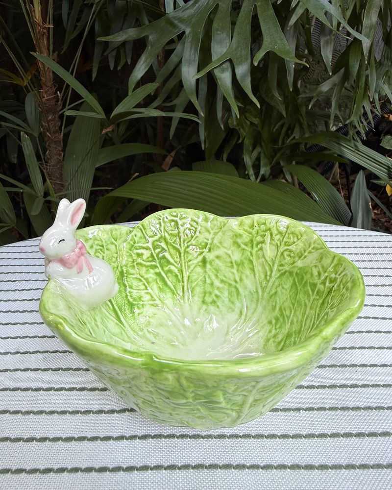 Bowl formato alface com coelho medindo 14cm de diâmetro x 8cm de altura.