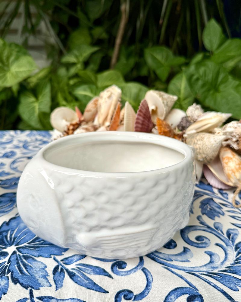 Bowl em cerâmica formato peixe medindo 13cm de diâmetro x 7cm de altura.