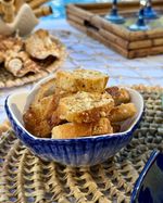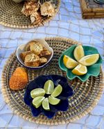 Bowl em cerâmica formato raiz de coral azul marinho medindo 14cm de diâmetro.
