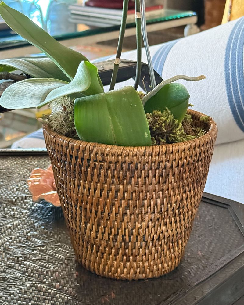 Cachepot de rattan natural.