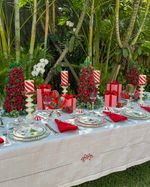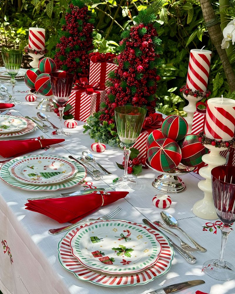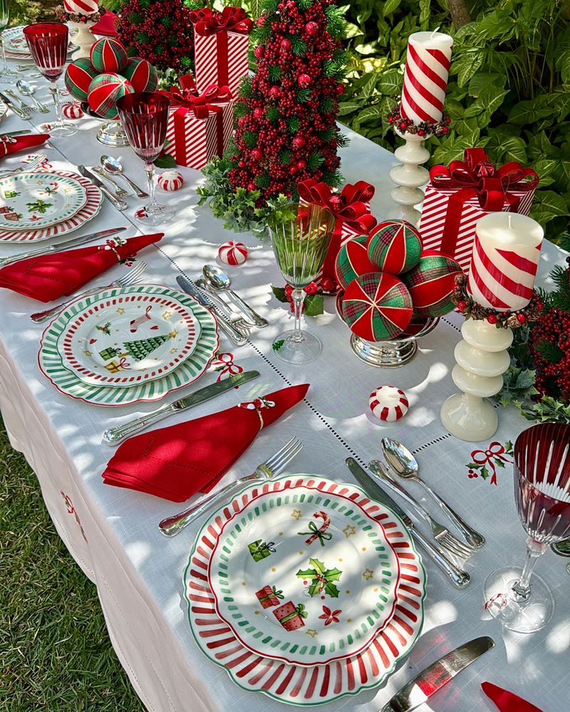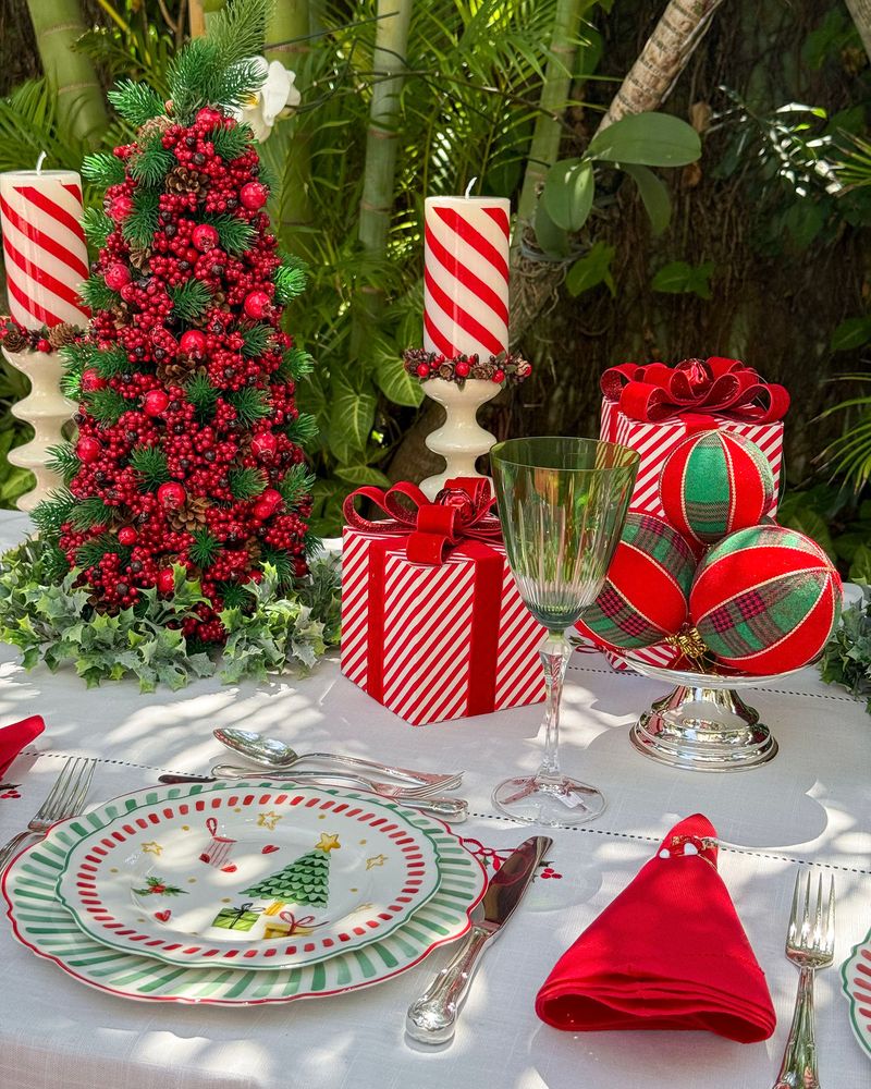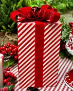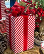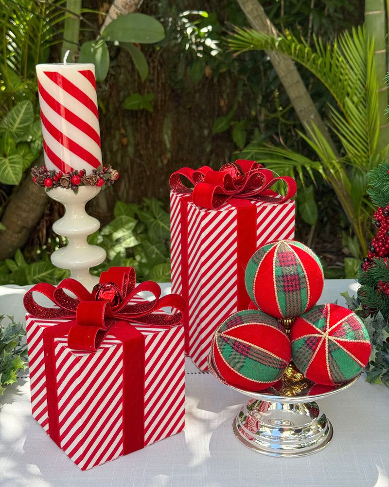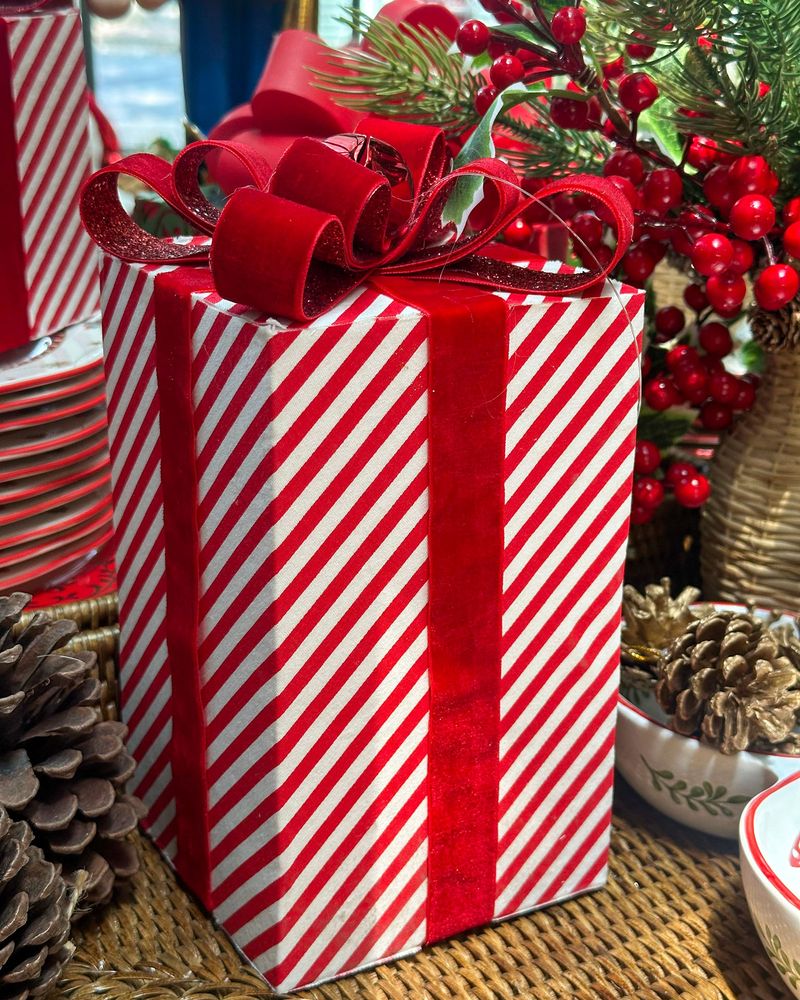 Caixa de presente listrada vermelha e branca veludo Natal 2025 - G