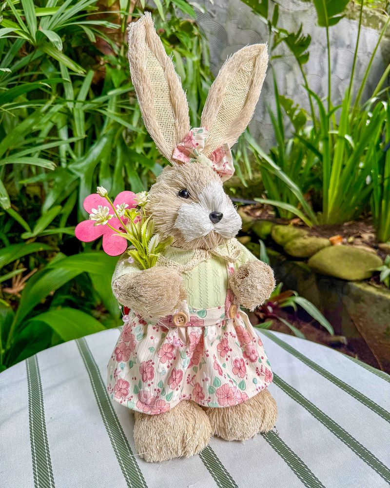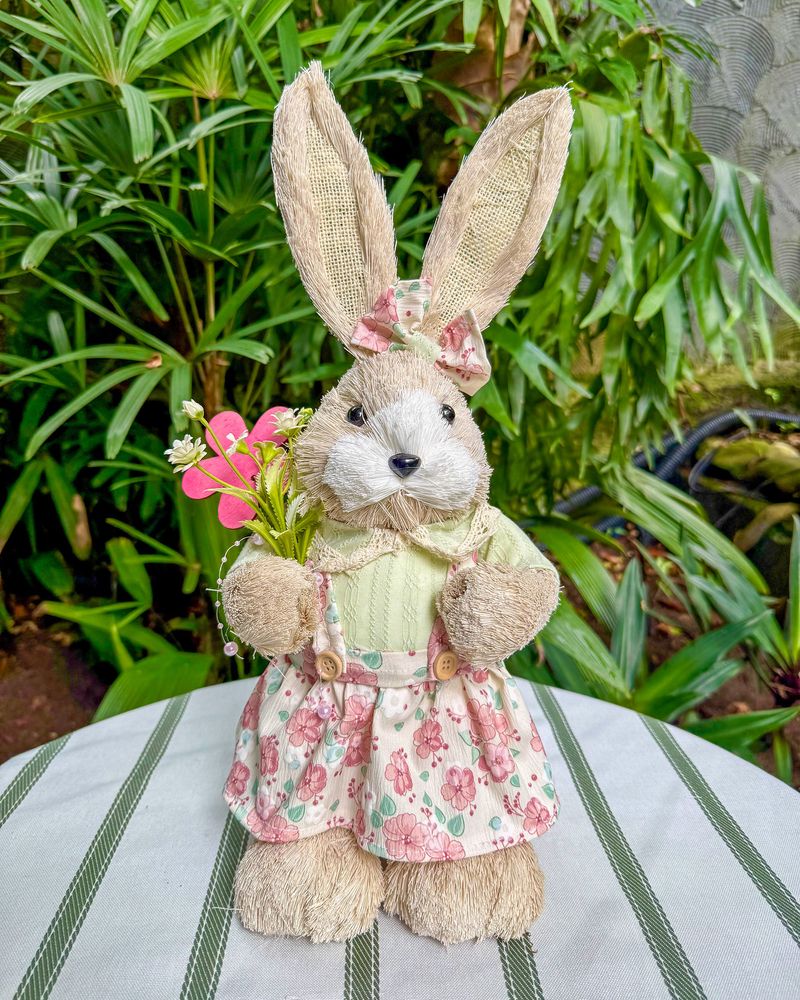Coelha P em pé vestido floral Celadon - Páscoa 2026