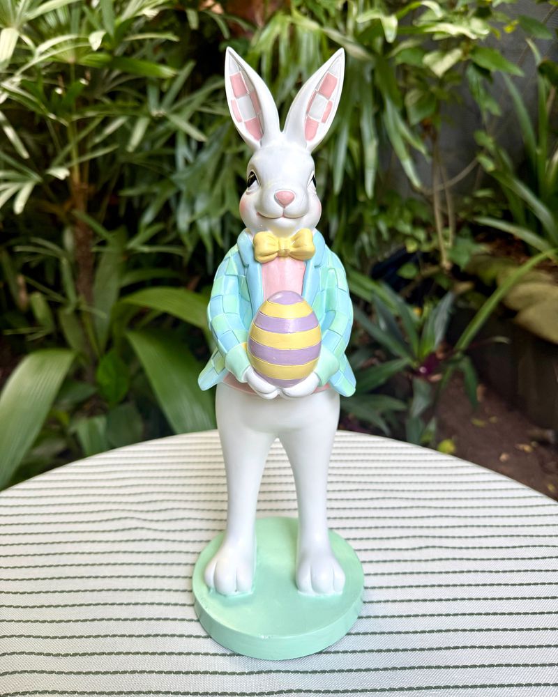 Coelho 35cm resina orelha xadrez jardim de borboletas - Páscoa 2026
