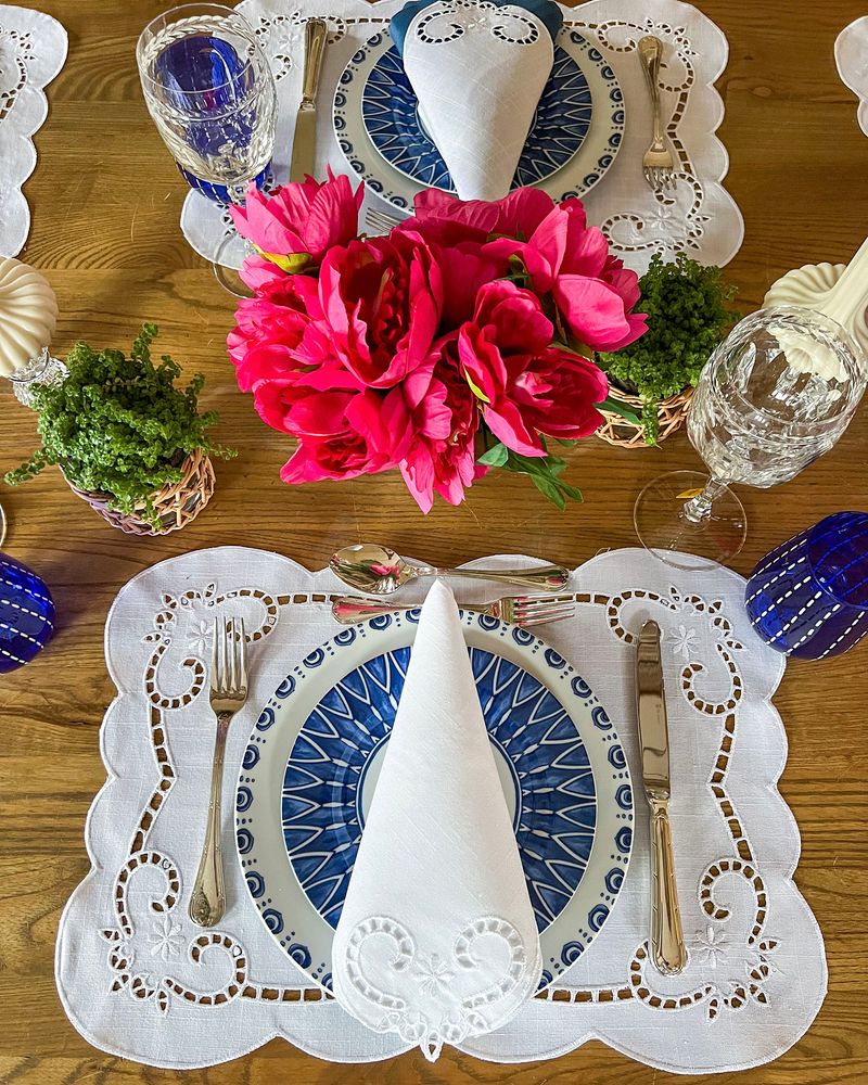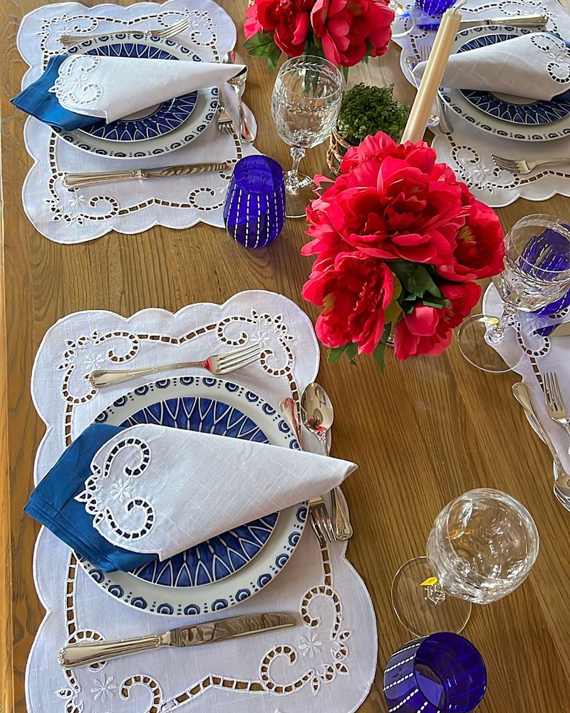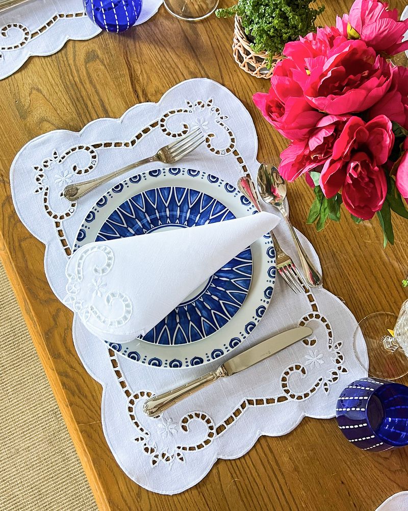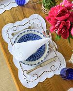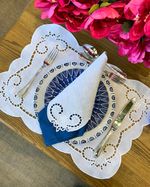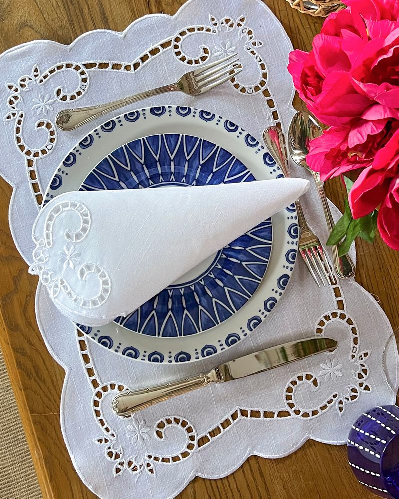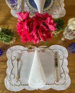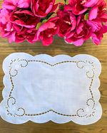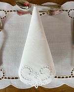 Conjunto de 1 jogo americano + 1 guardanapo richilieu branco.