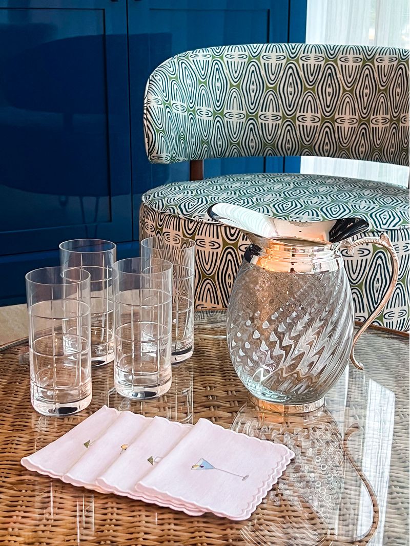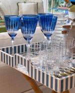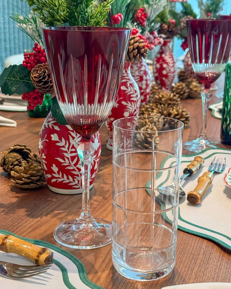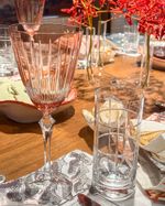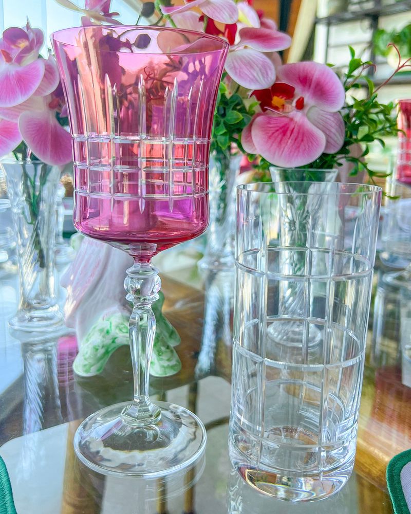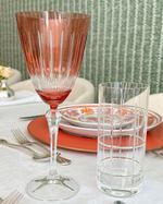 Conjunto de 6 copos long drink de cristal com lapidação xadrez Strauss.