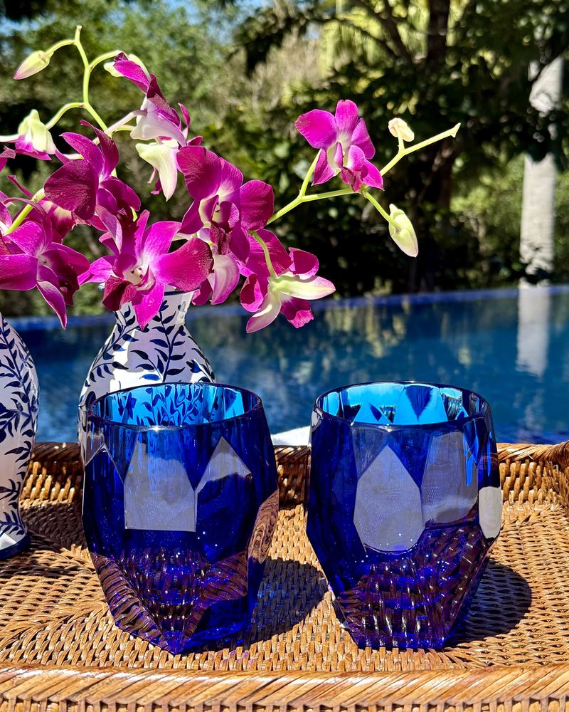 Copo em acrílico azul escuro, ótimo para areas externas como piscina e casa de praia.