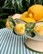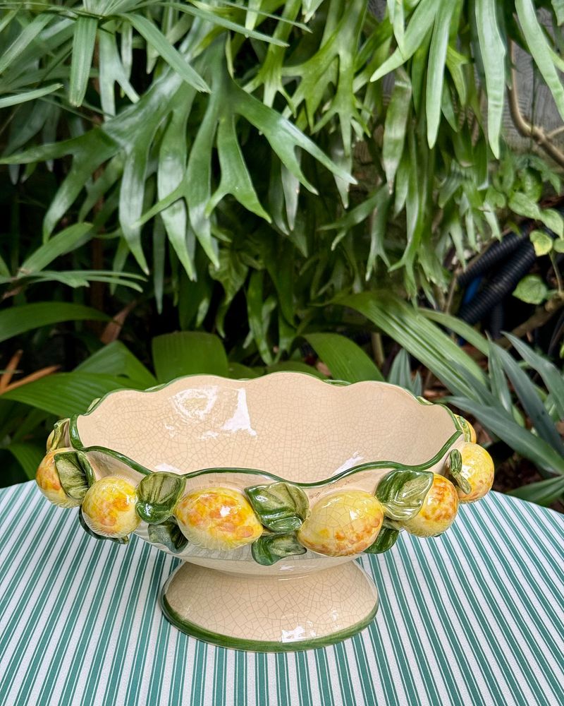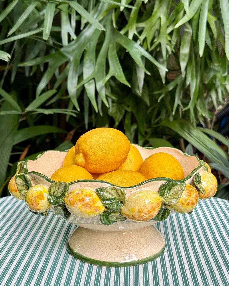 Fruteira baixa em cerâmica de limão siciliano medindo 25cm de diâmetro x 13cm de altura