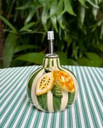 Galheteiro em ceramica de limão siciliano em relevo com listras verdes