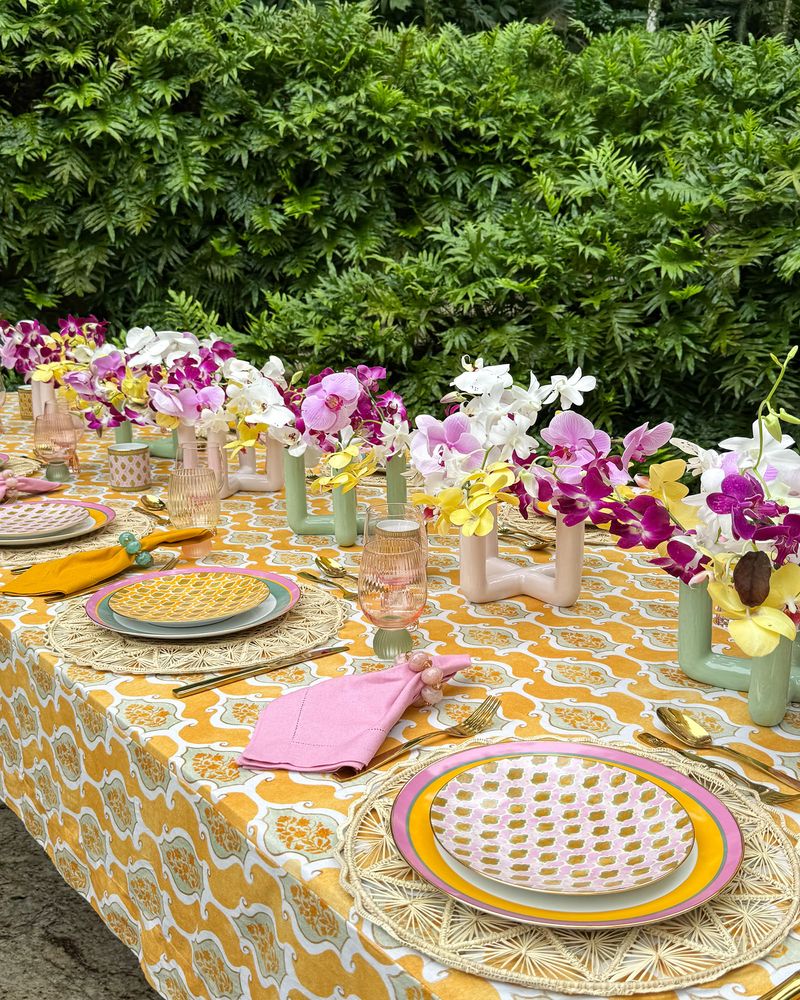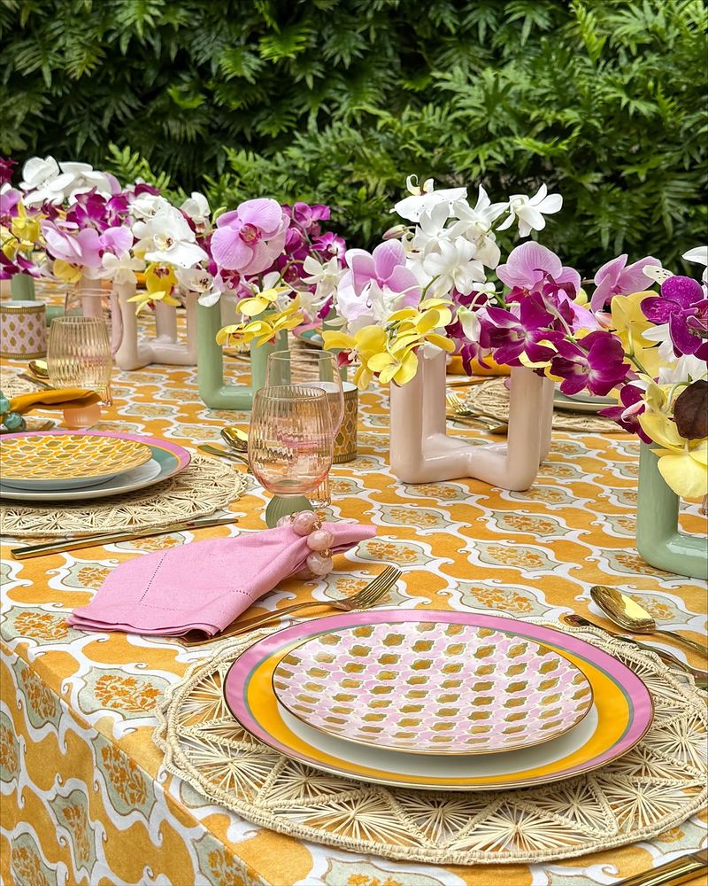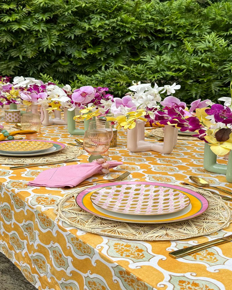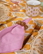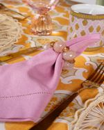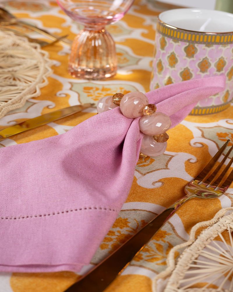 - Guardanapo em linho misto de cor rosa ponto ajour medindo 50x50cm