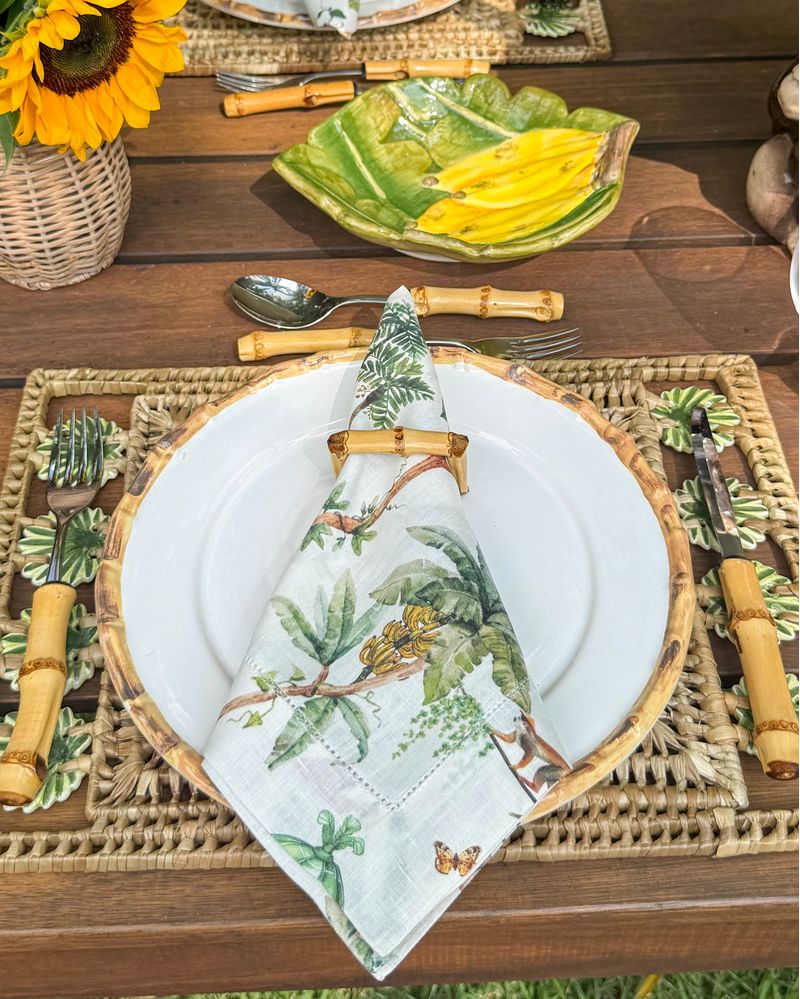 Guardanapo linho estampa macaquinho Palm Beach - off white