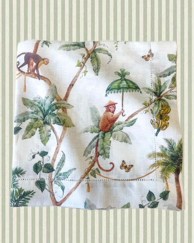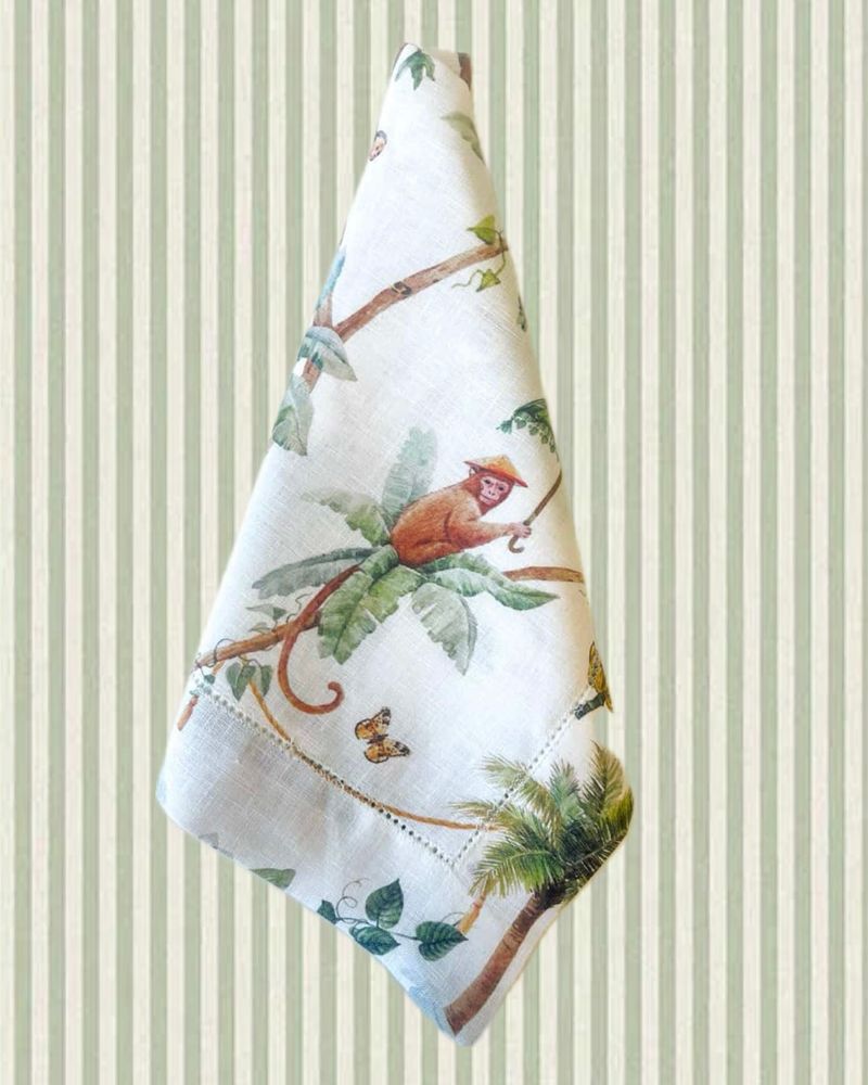 Guardanapo em linho off white com estampa macaquinho.