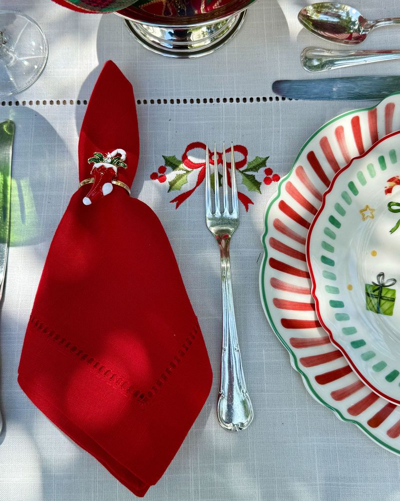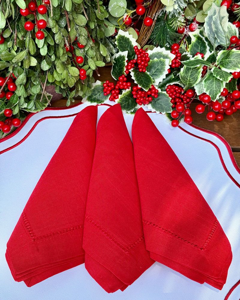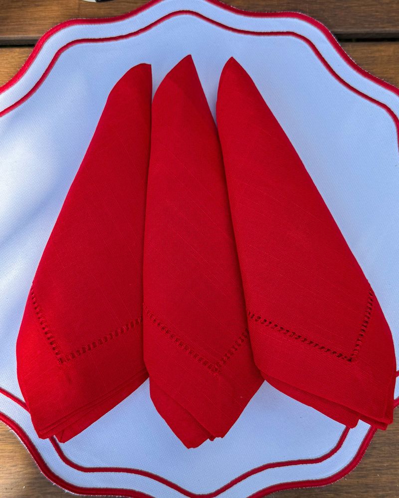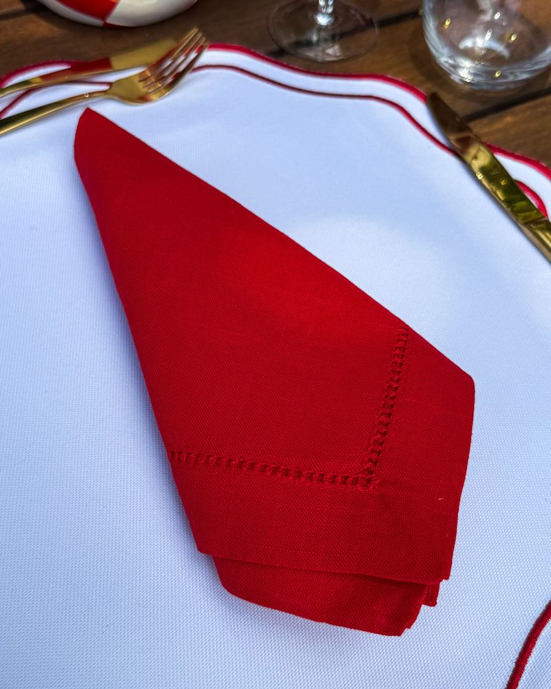Guardanapo de linho misto na cor vermelha medindo 45x45cm