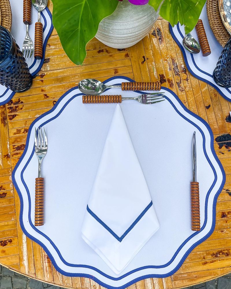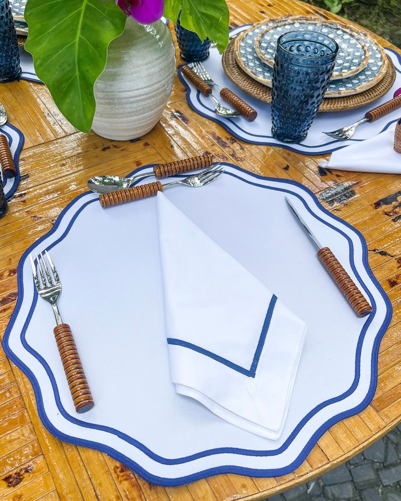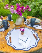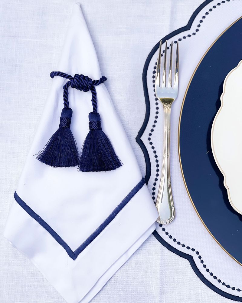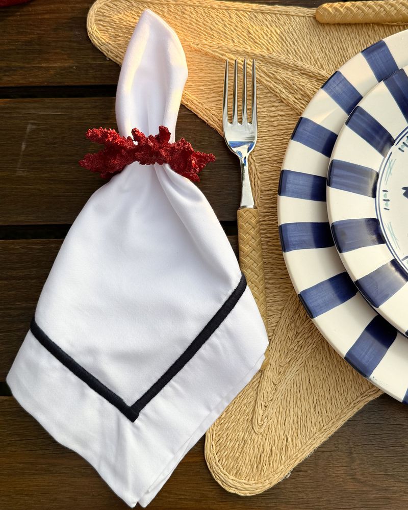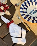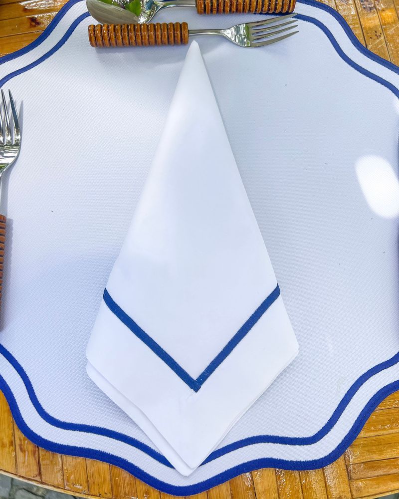 Guardanapo Percal Branco Barra Palito - Azul Marinho