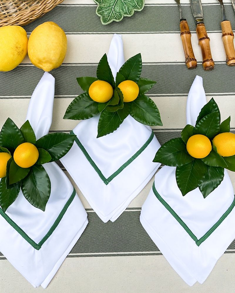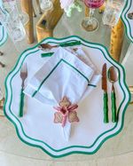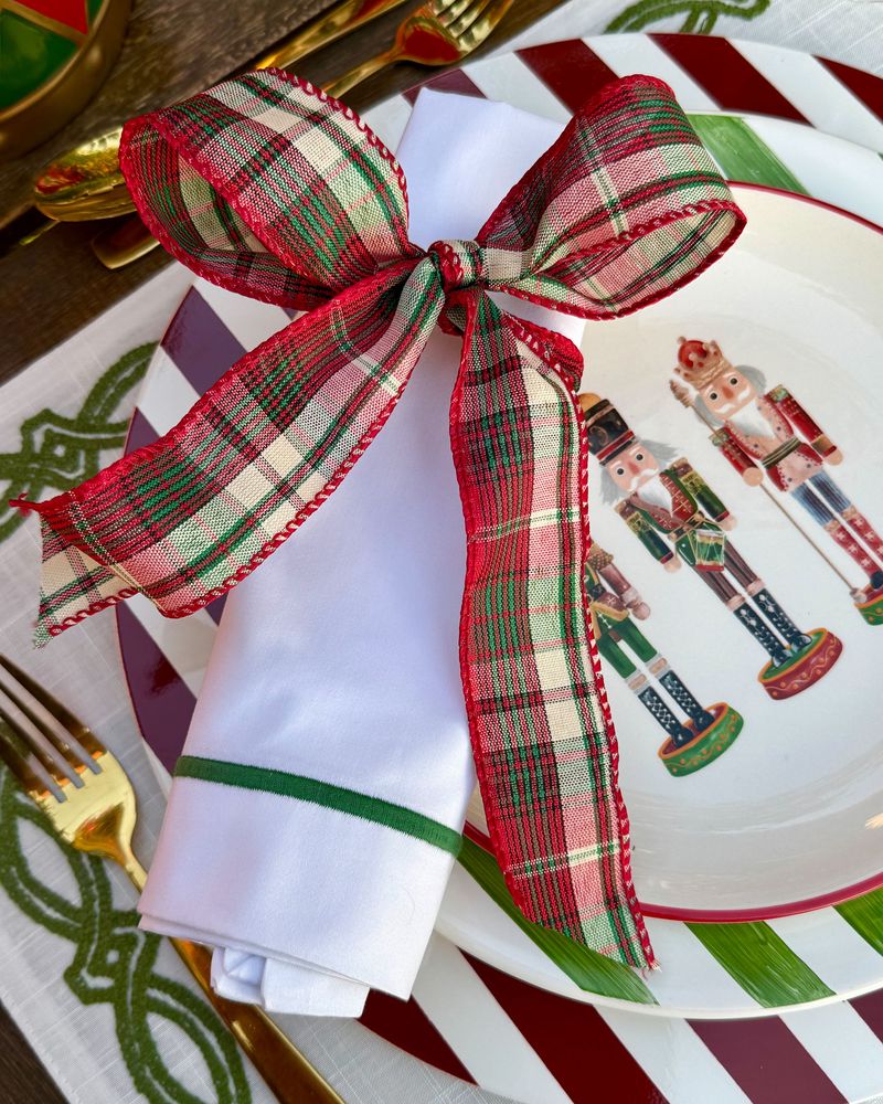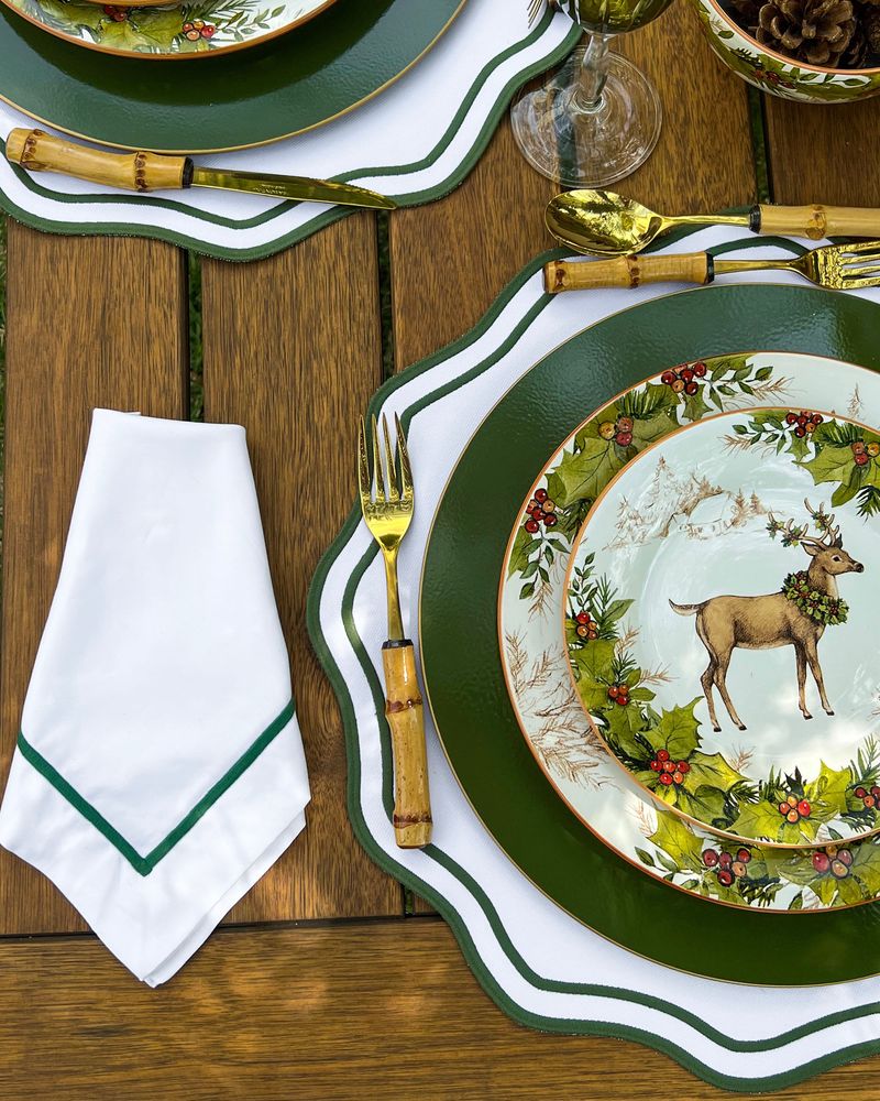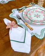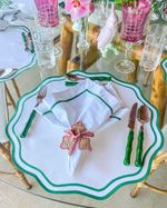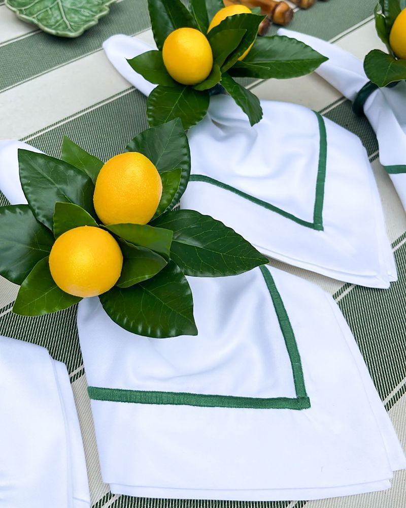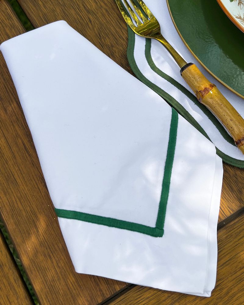 Guardanapo Percal Branco Barra Palito - Verde Escuro