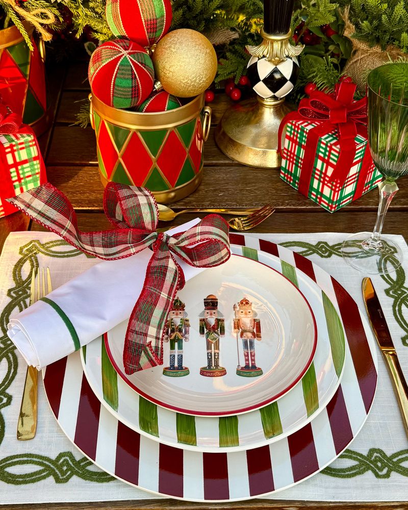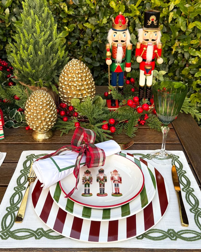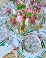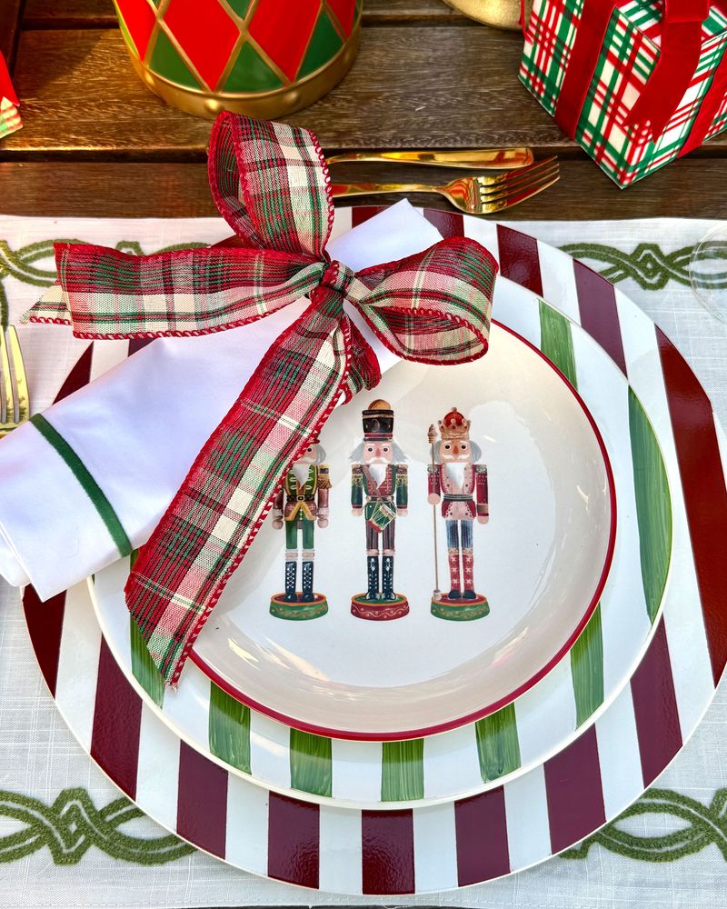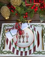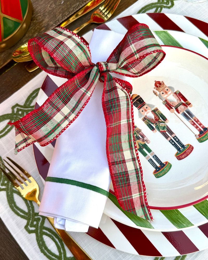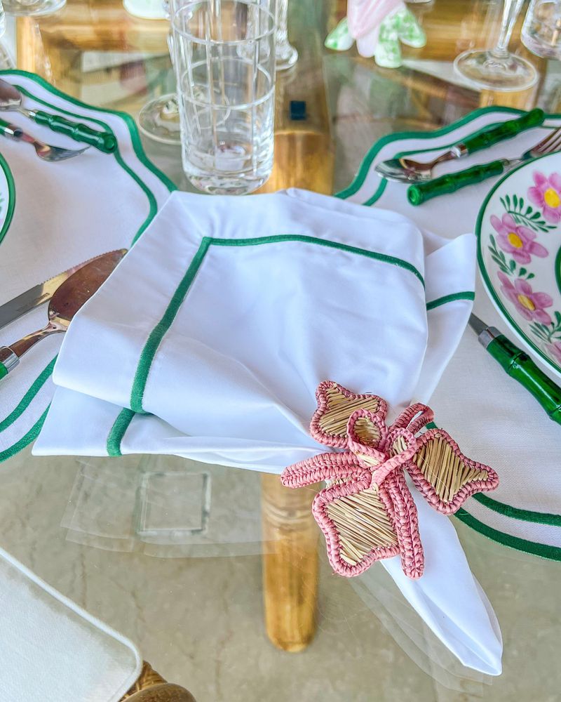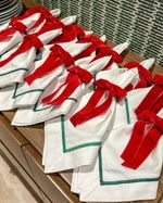 Guardanapo Percal Branco Barra Palito - Verde Escuro