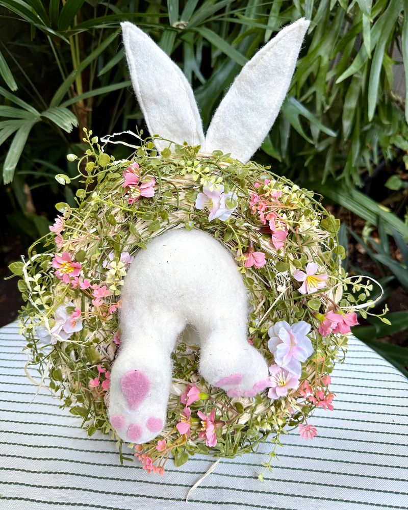 Guirlanda floral bumbum de coelha medindo 35cm de diâmetro