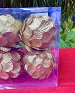 Kit 4 bolas medindo 10cm cada efeito escama na cor dourada.