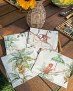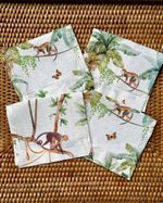 Kit 4 guardanapos de coquetel em linho estampa macaquinho.