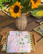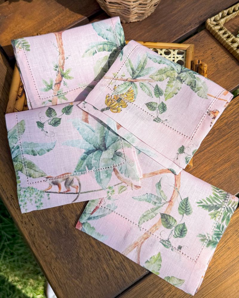 Kit 4 guardanapos de coquetel em linho rosa estampa macaquinho.