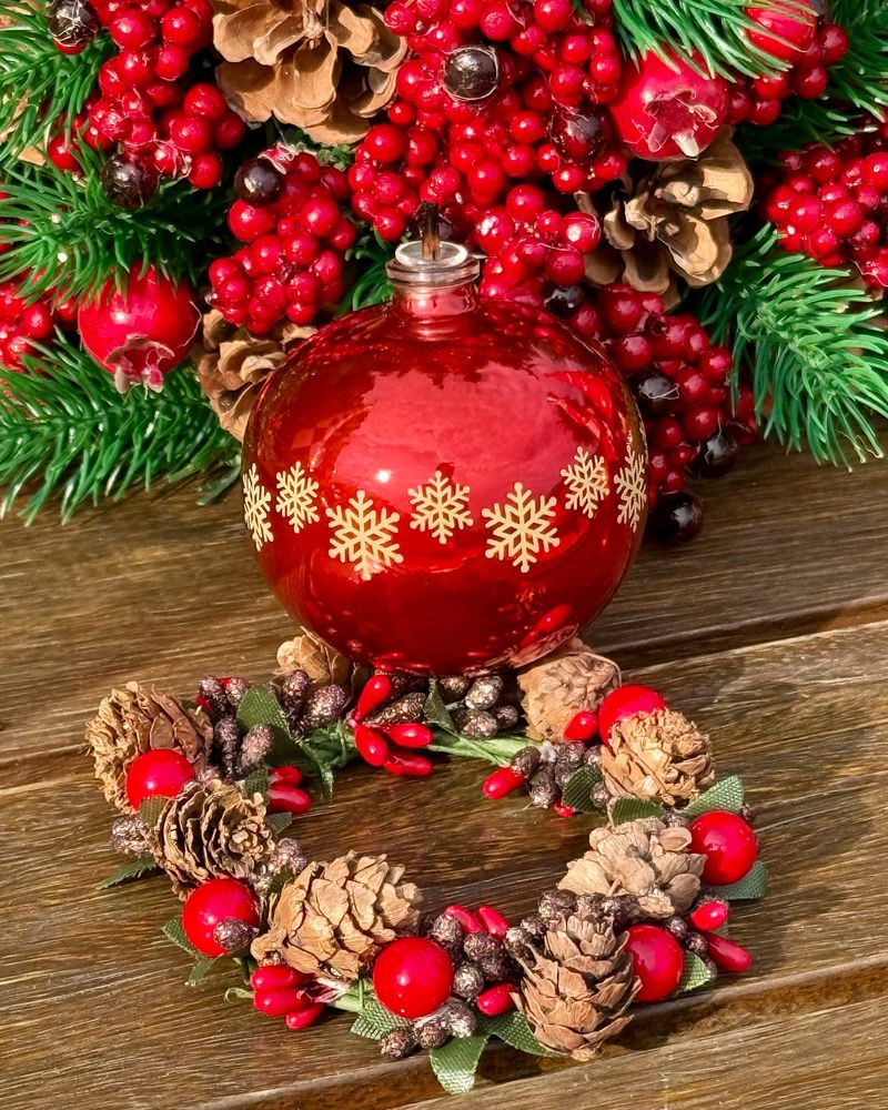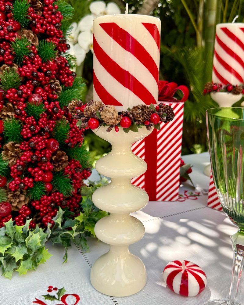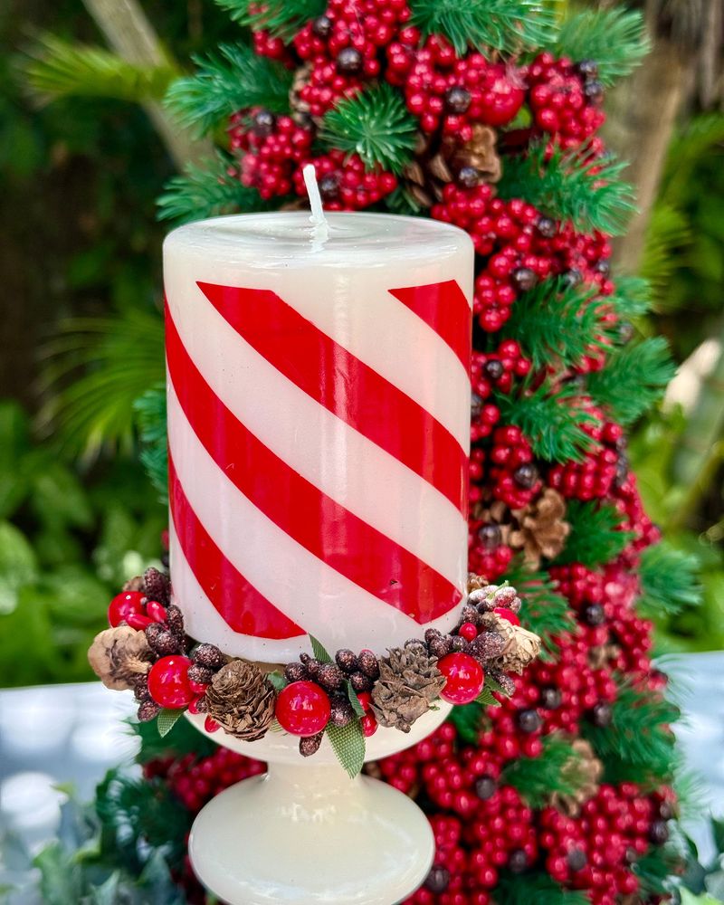 Mini guirlanda para vela pinhas e frutinhas cristalizadas Natal 2025