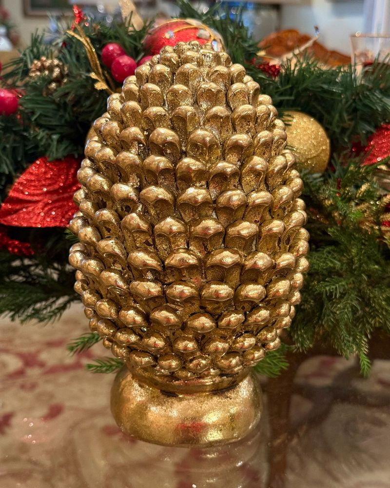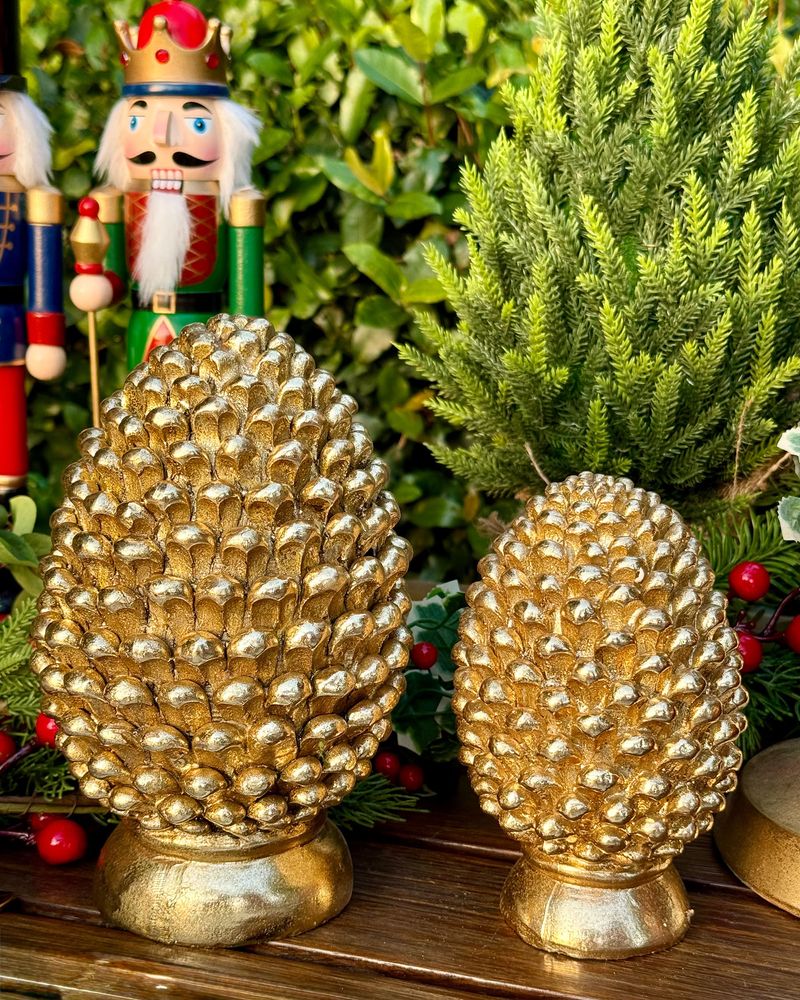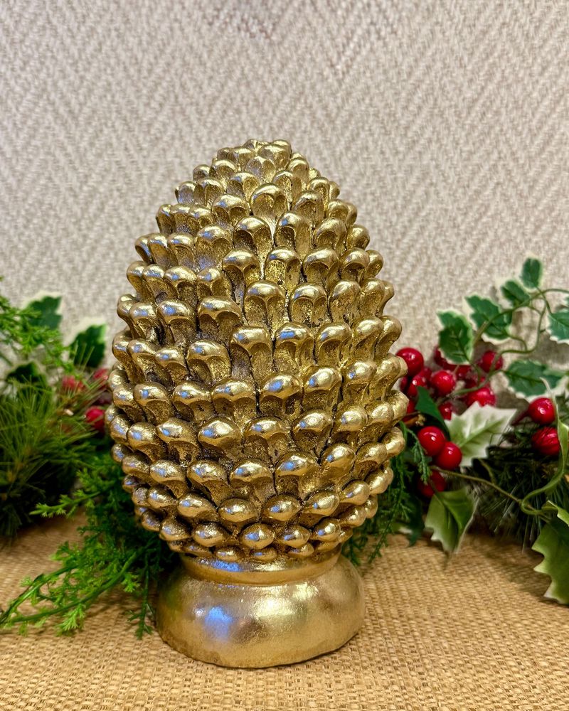 Pinha decorativa resina dourada M - Natal 2025