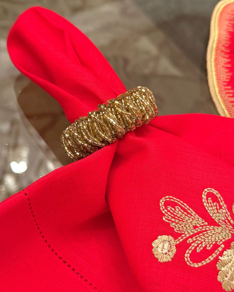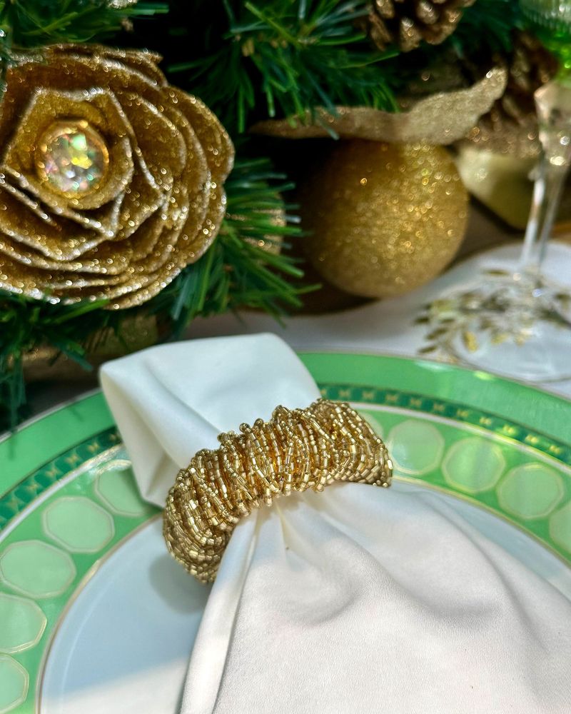 Porta guardanapo argola miçangas douradas.