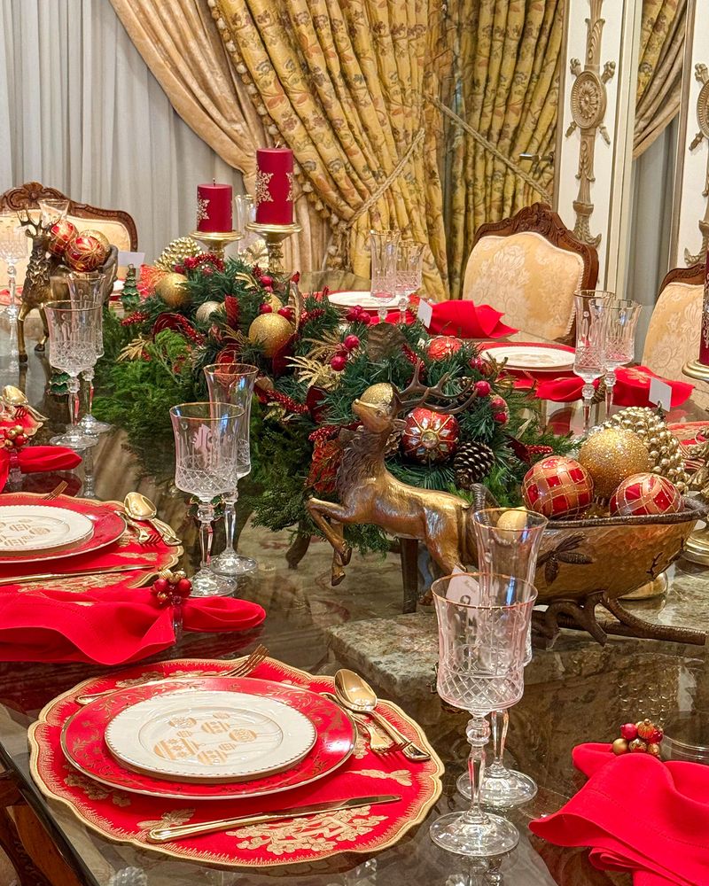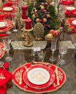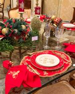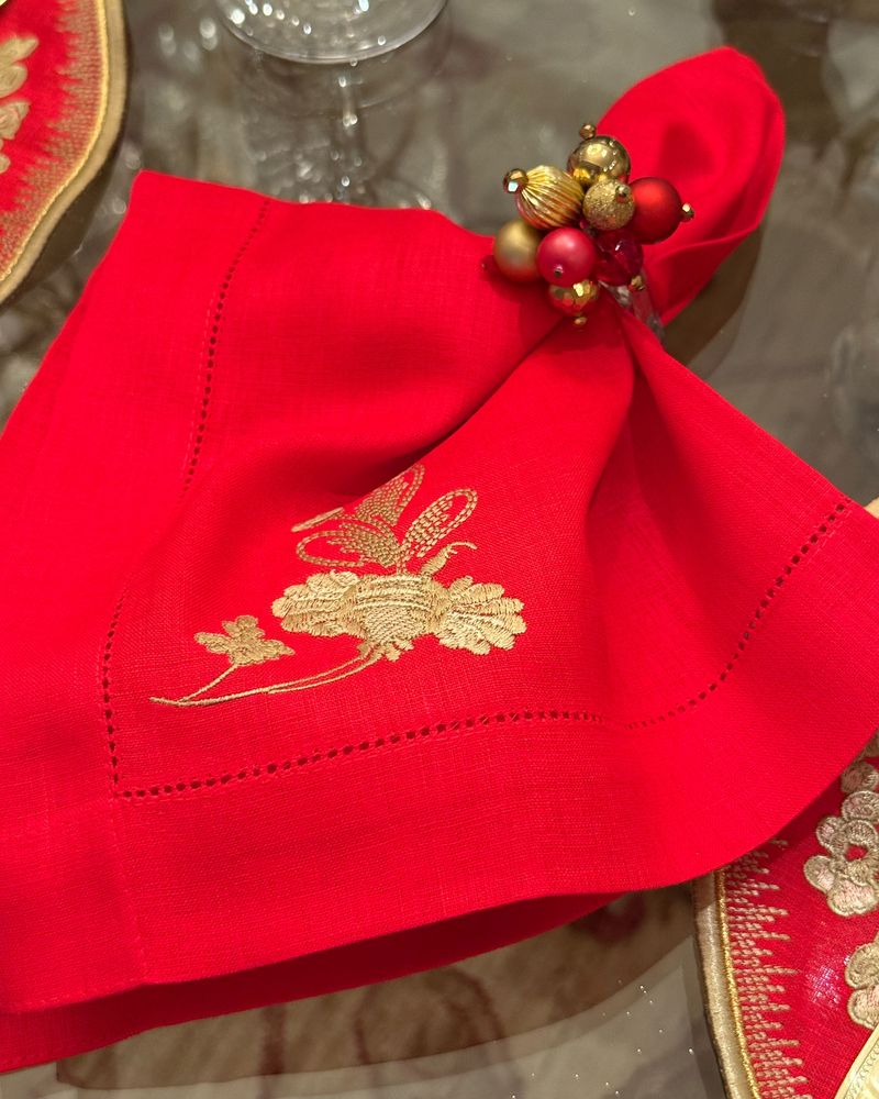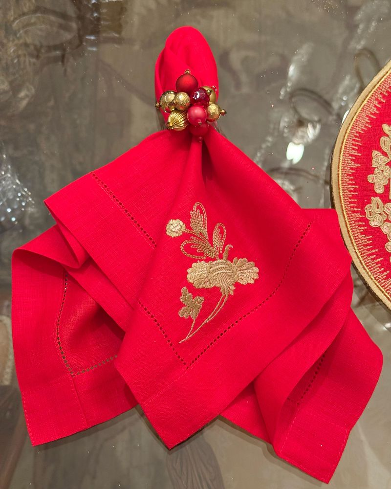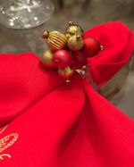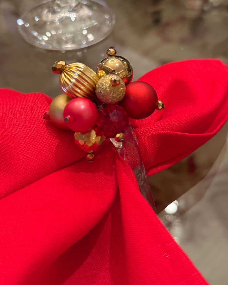 Porta guardanapo argola de acrílico berloques vermelho e dourado.