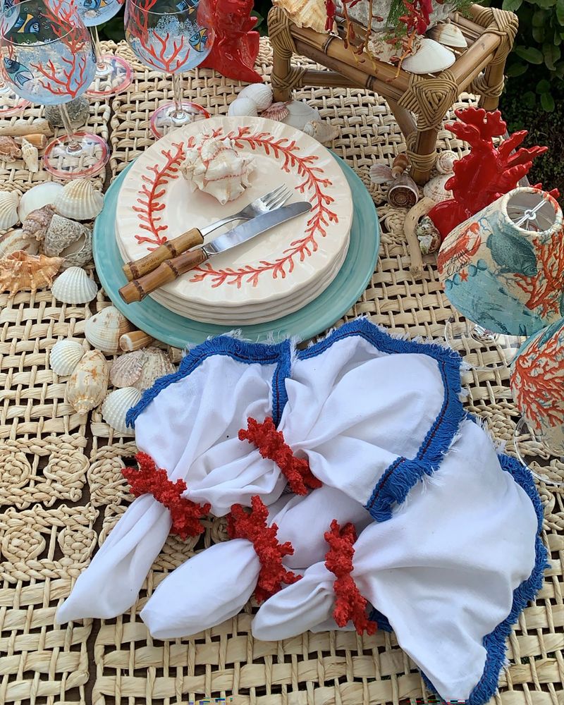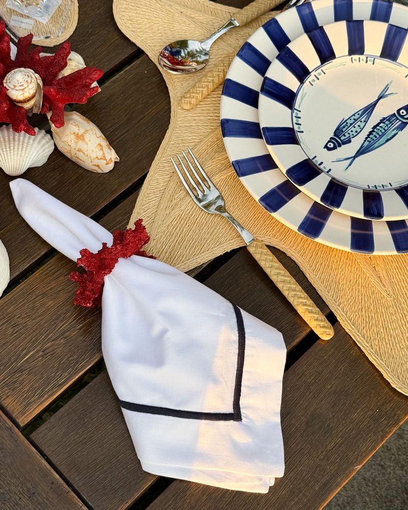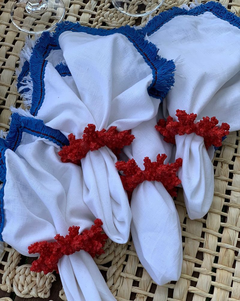 Porta Guardanapo todo em resina com detalhe raiz de coral em relevo na cor vermelha.