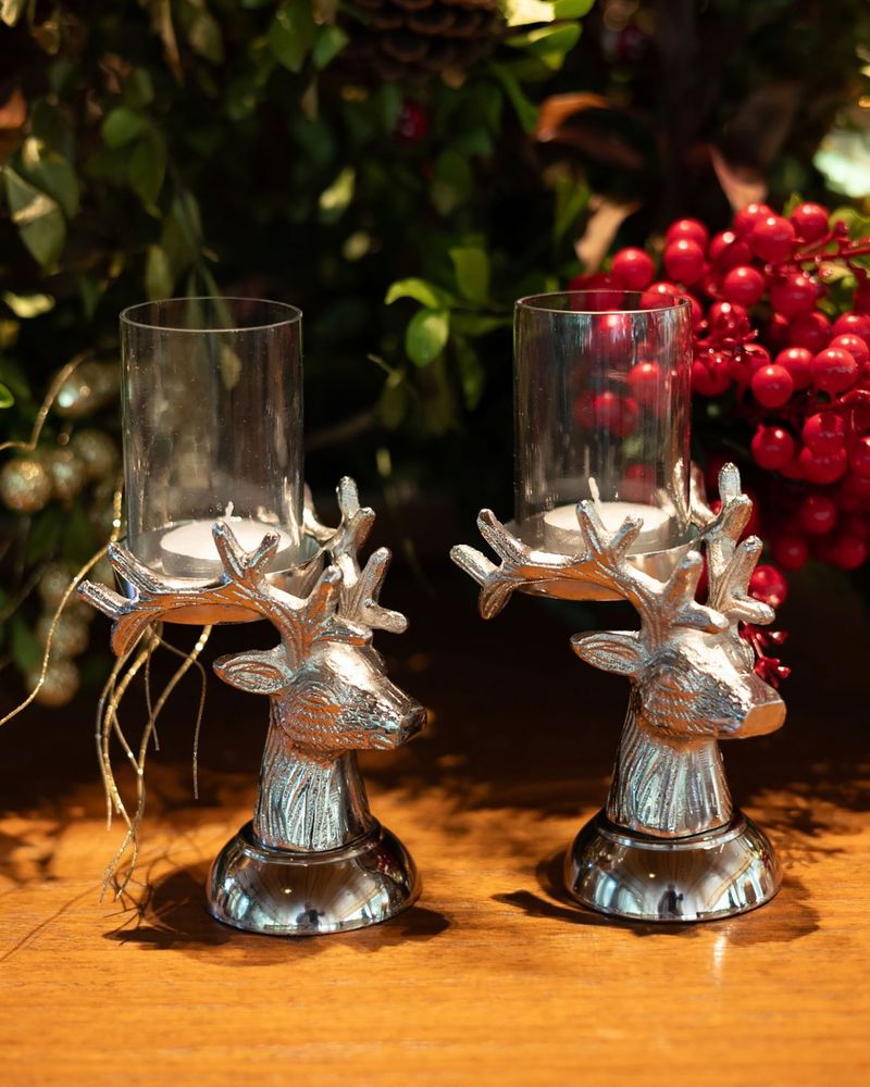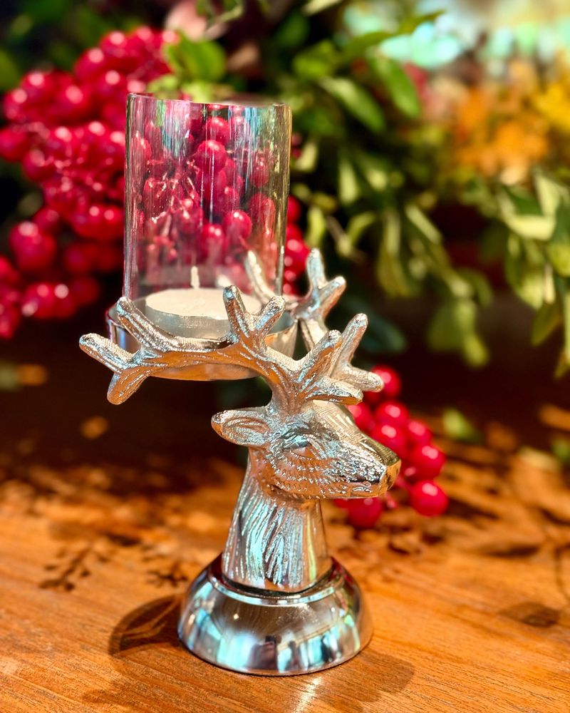 Porta vela cabeça de alçe com vidro removível.