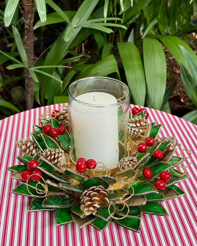 Porta vela capiz vermelho - Natal 2025