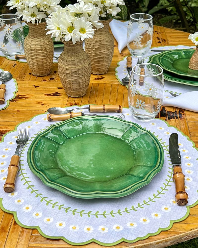 Prato raso de cerâmica Zanatta da linha Casual verde.