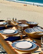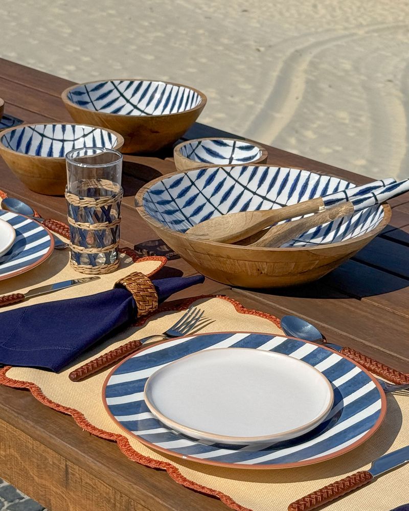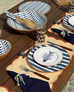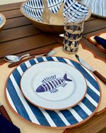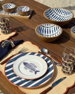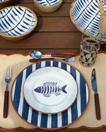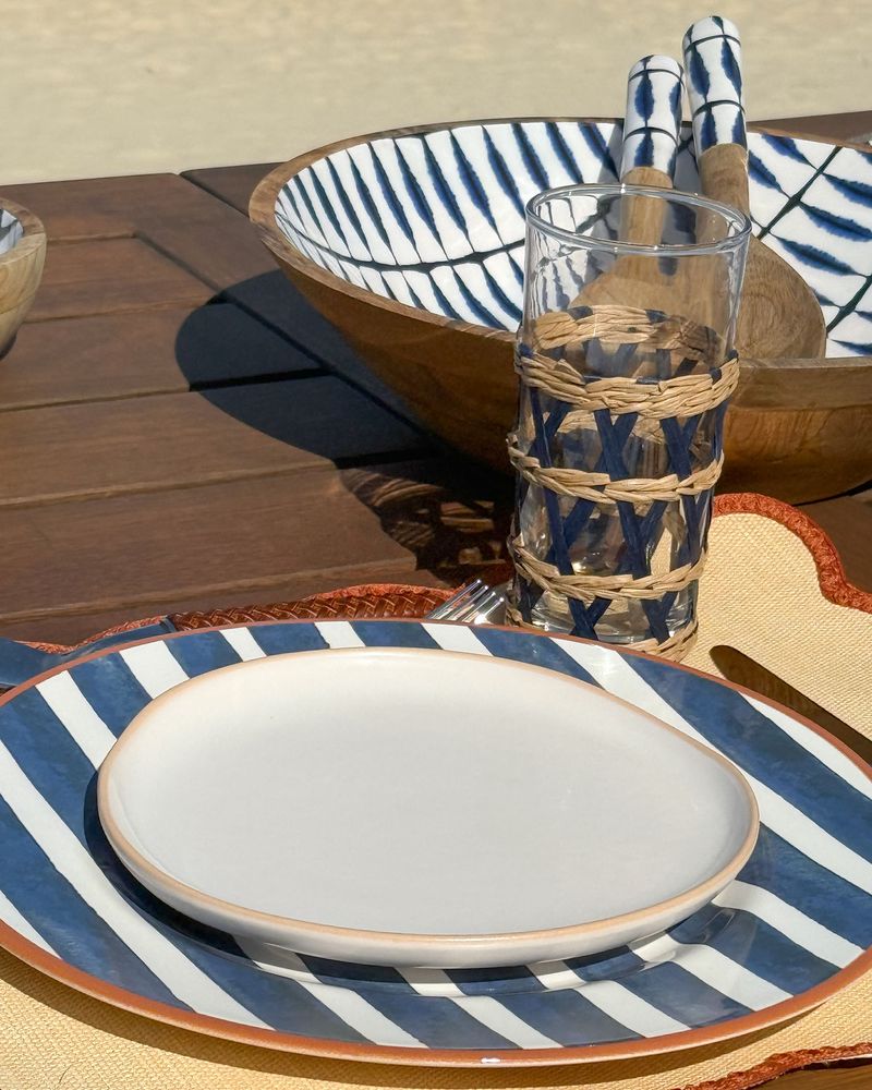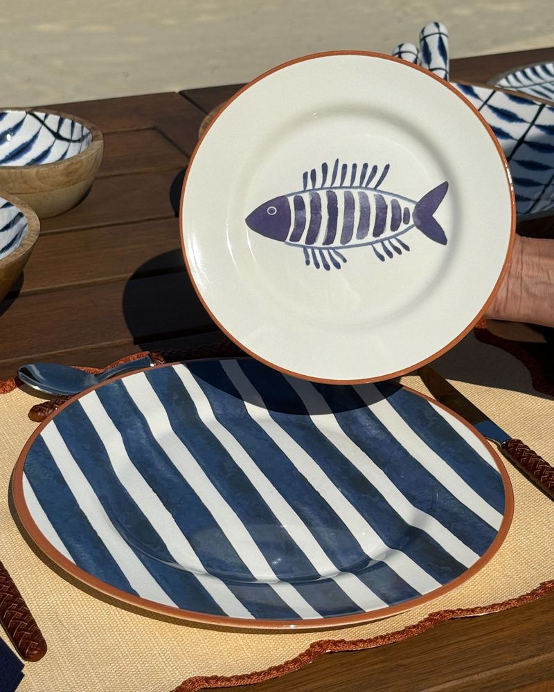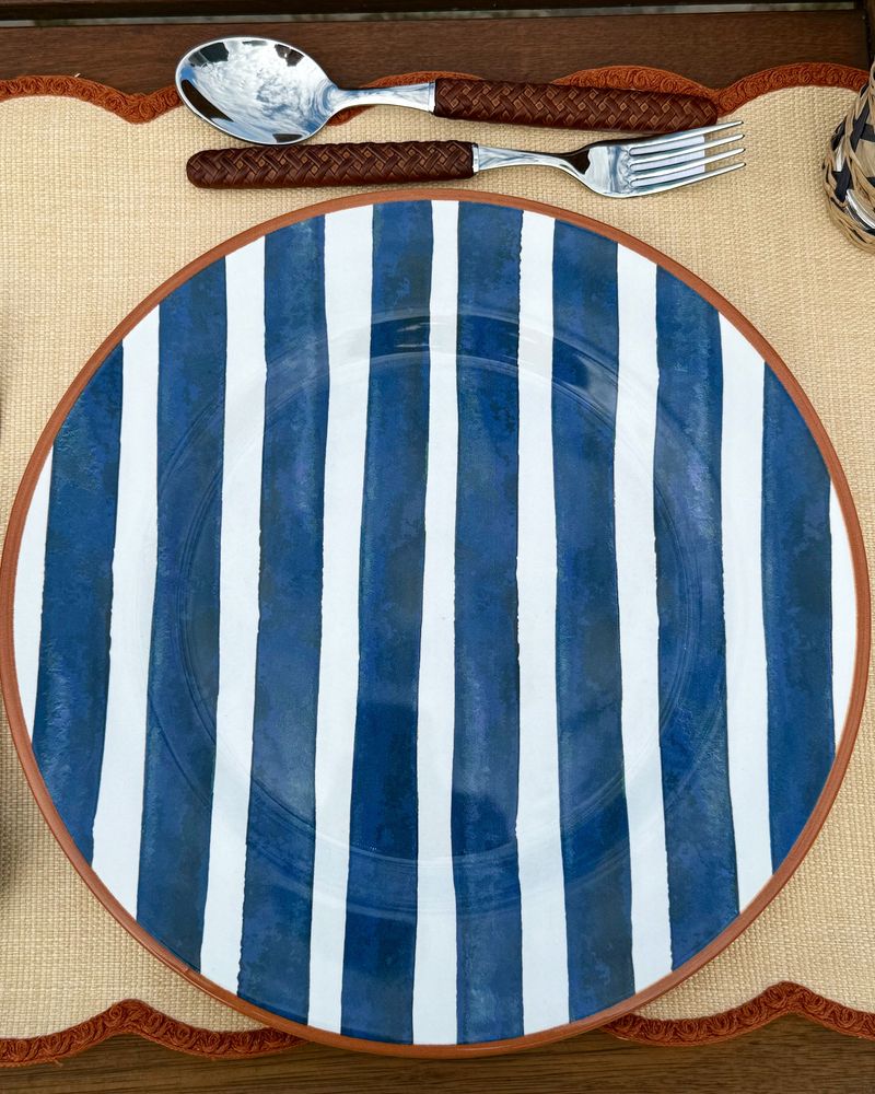 Prato raso em cerâmica listrado azul marinho
