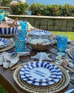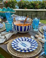 Prato sobremesa azul e branco Sardine