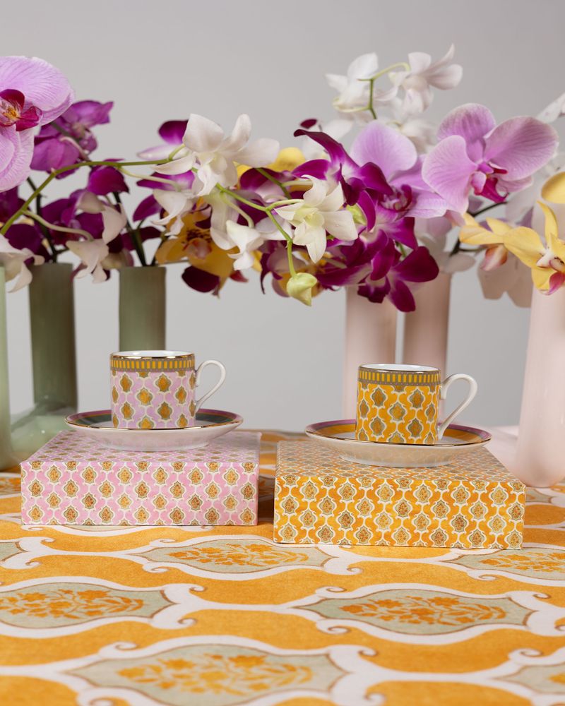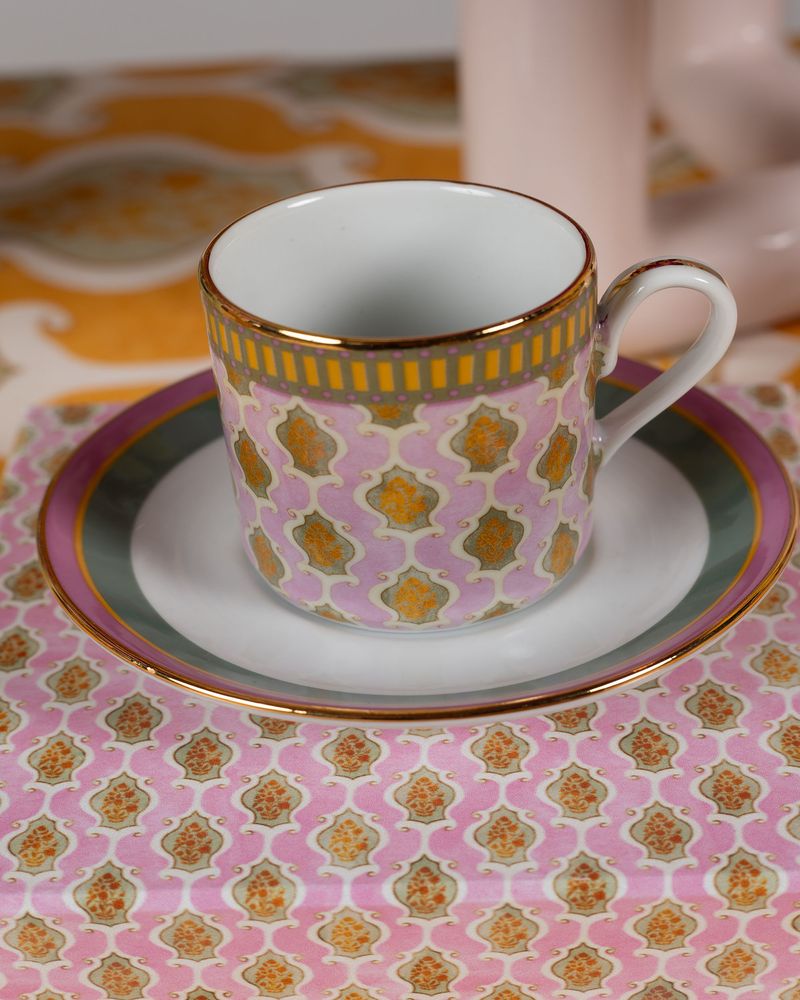 . Set de 2 xícaras de café em porcelana com detalhe em friso de ouro feito á mão.