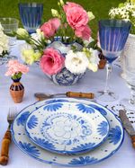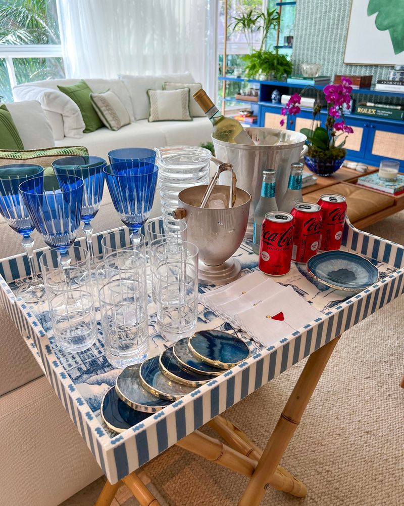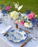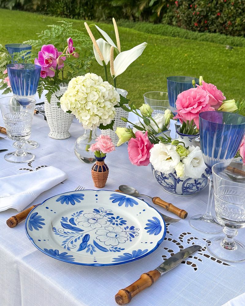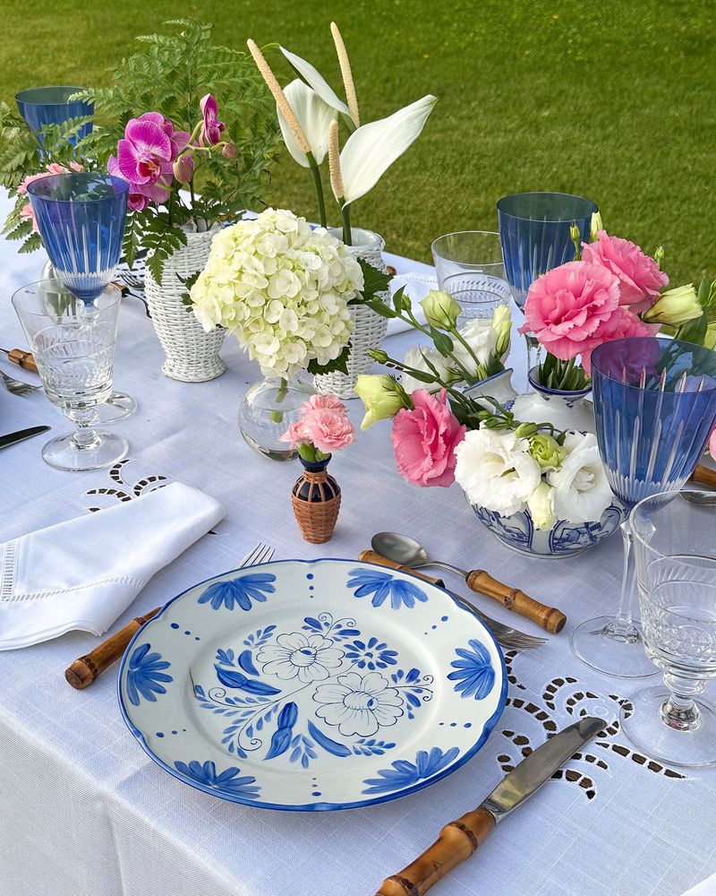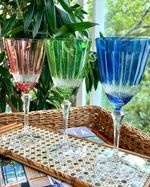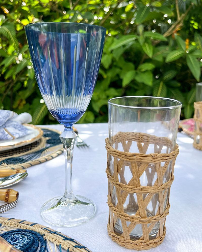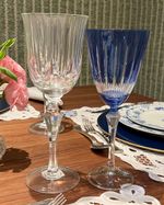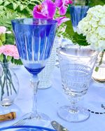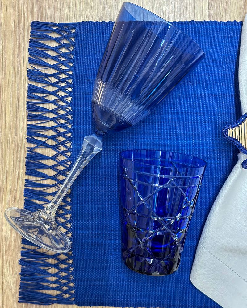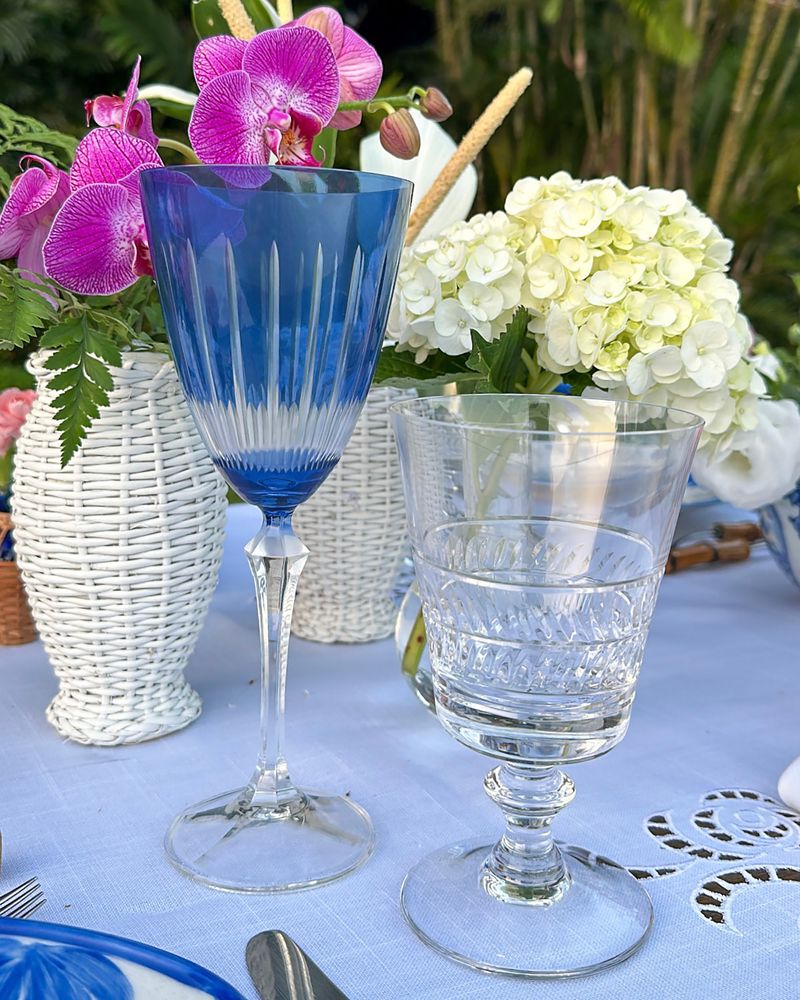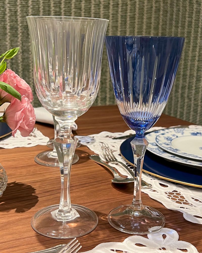 Taça de cristal ecológico azul lapidado (tom de azul das louças Vista Alegre).