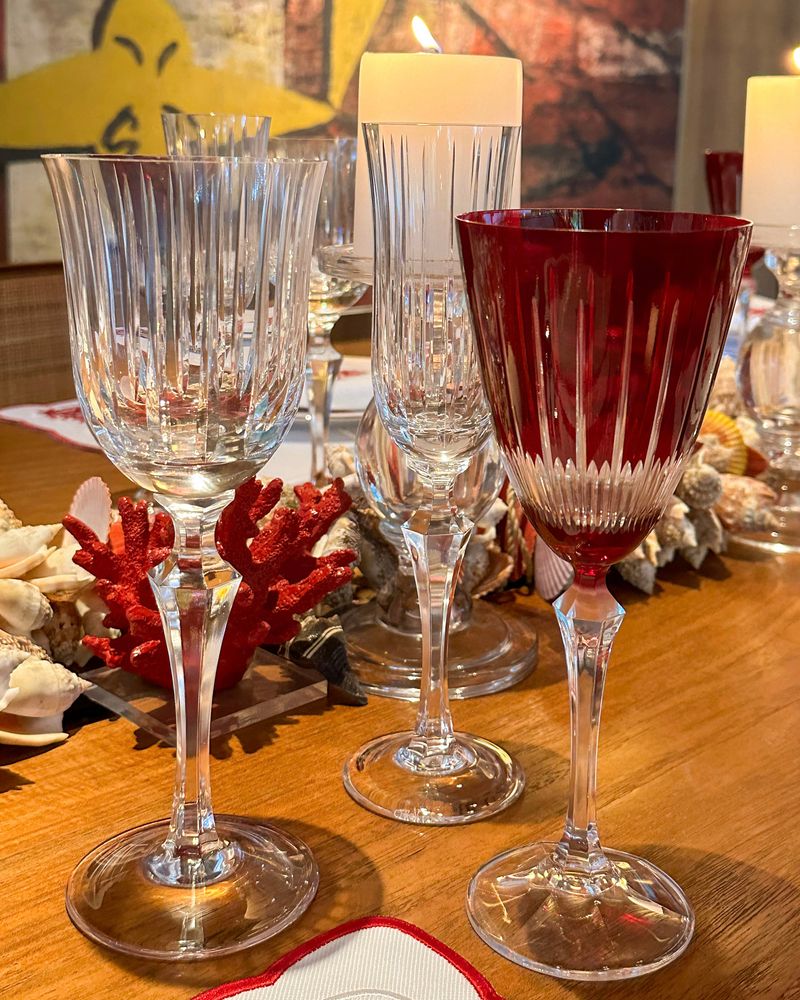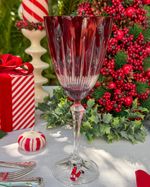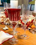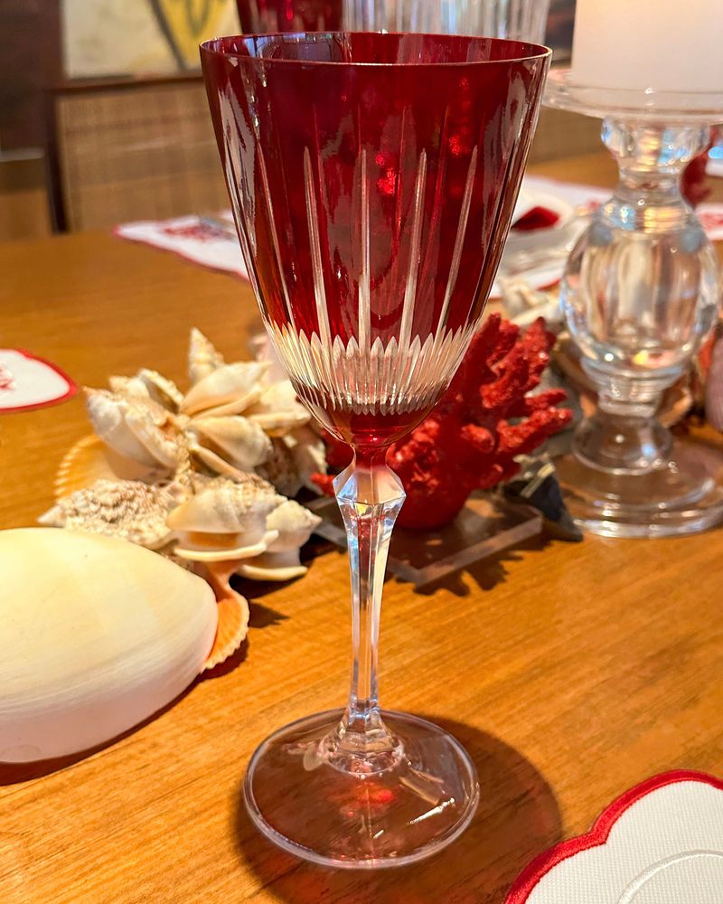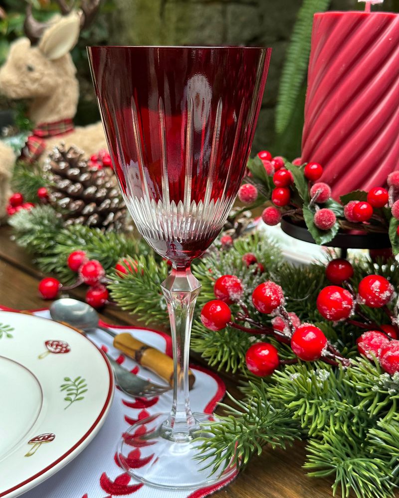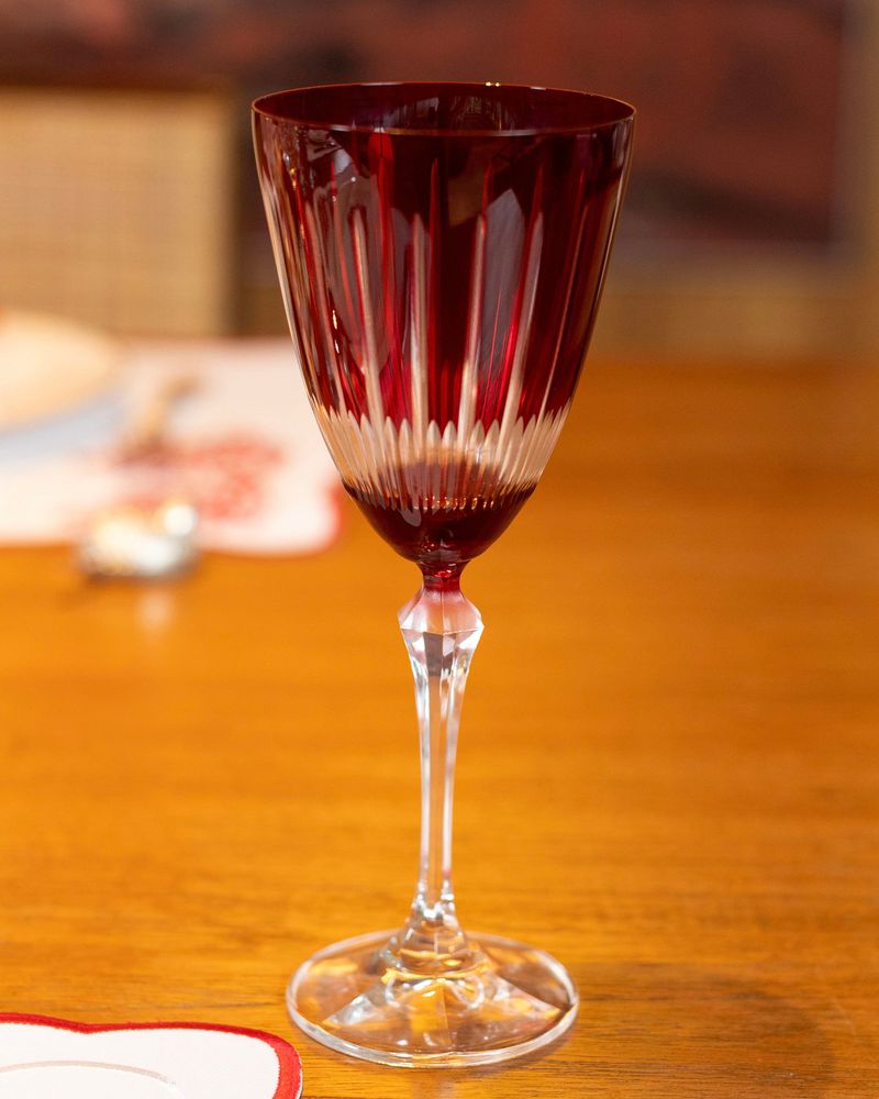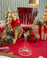 Taça de cristal ecológico vermelho lapidado.