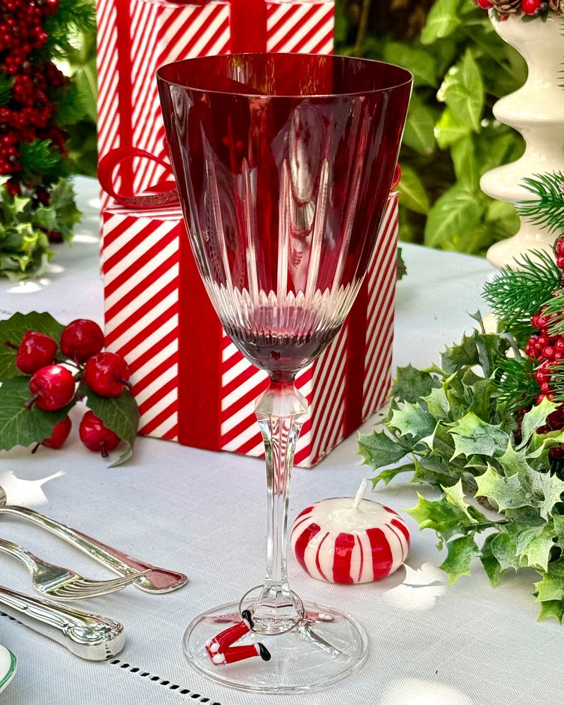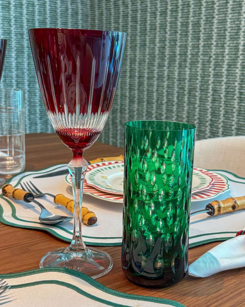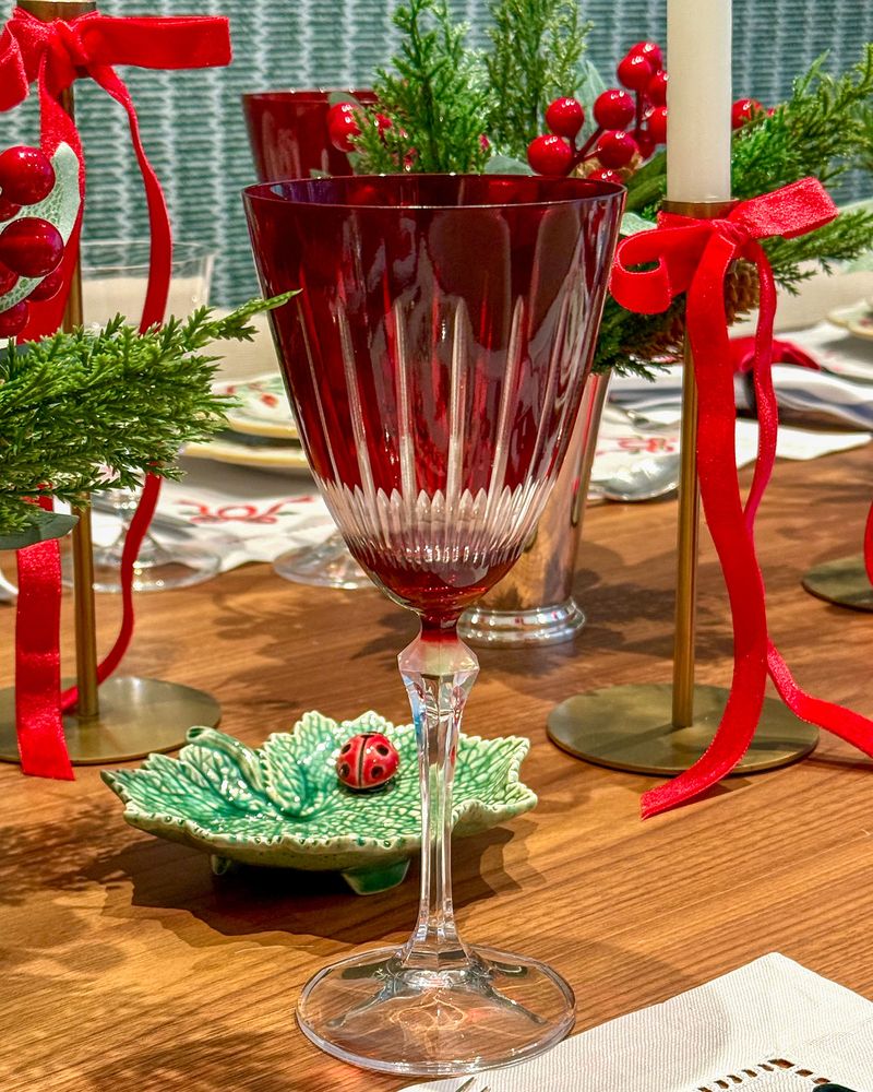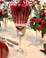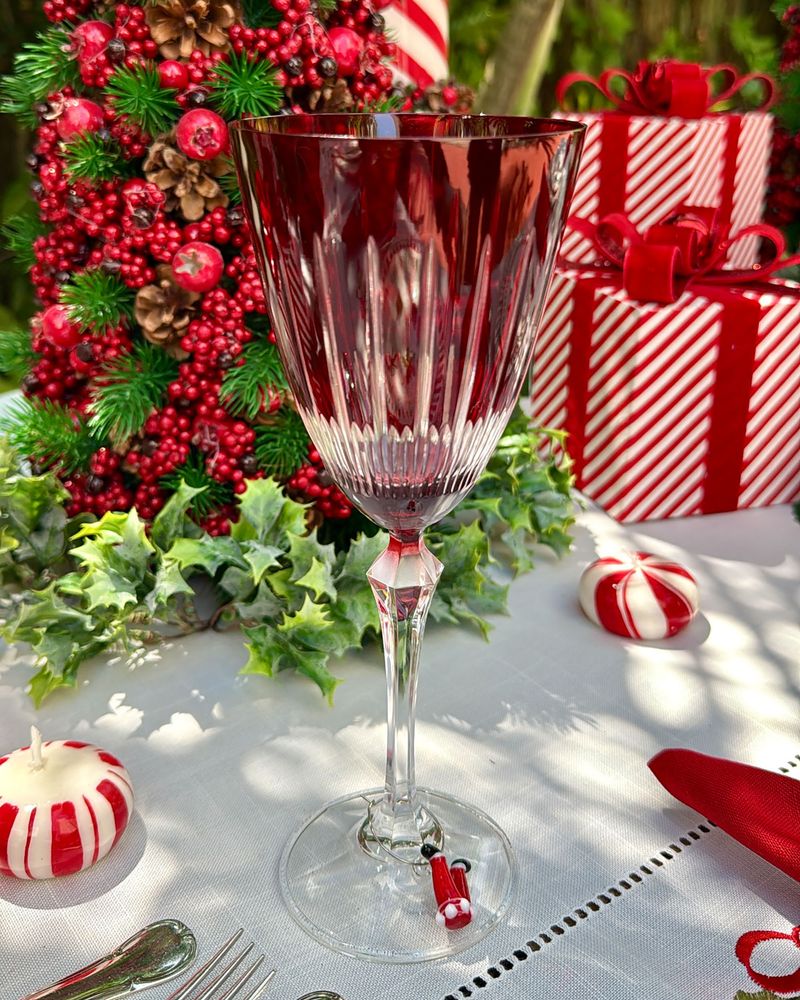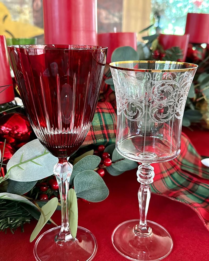Taça de cristal ecológico vermelho lapidado.