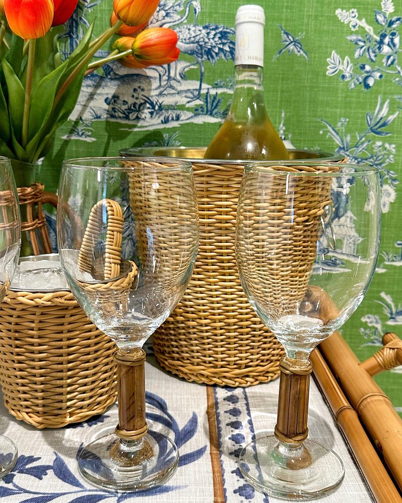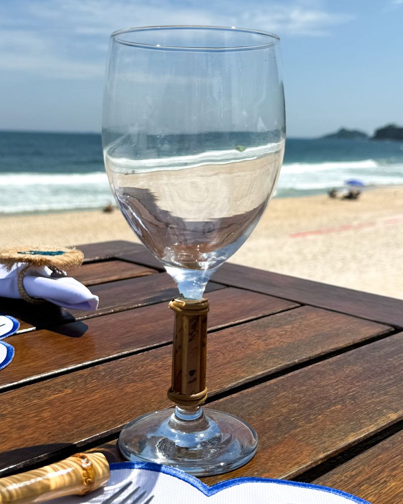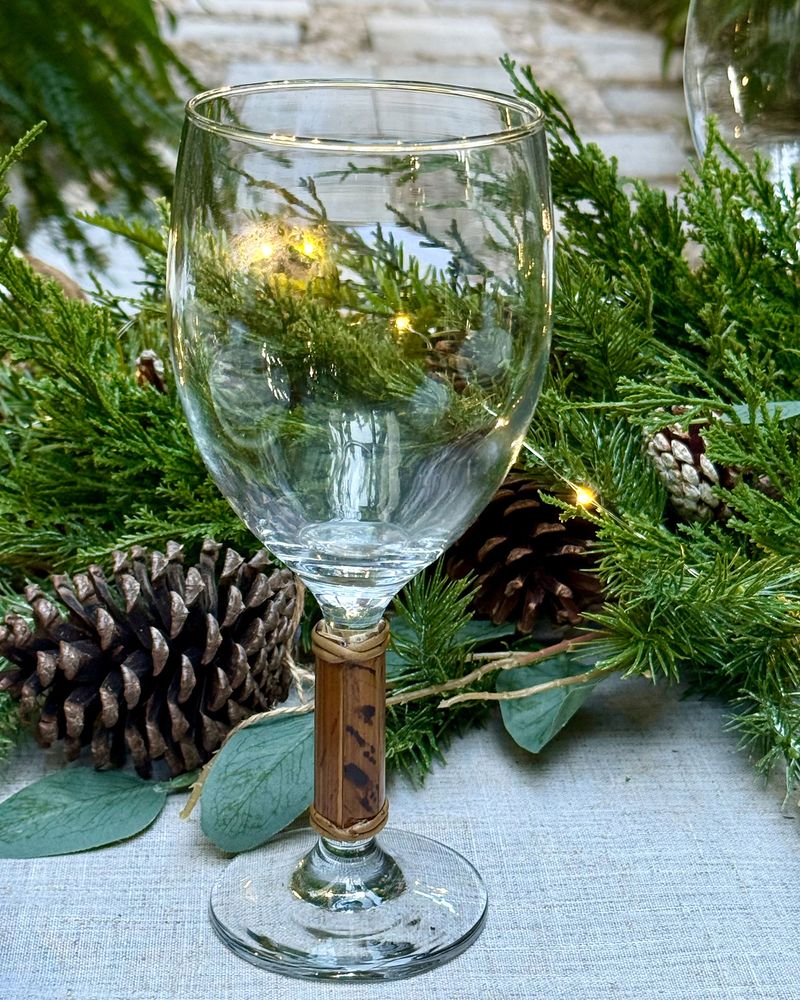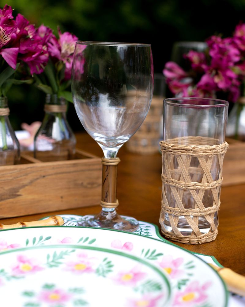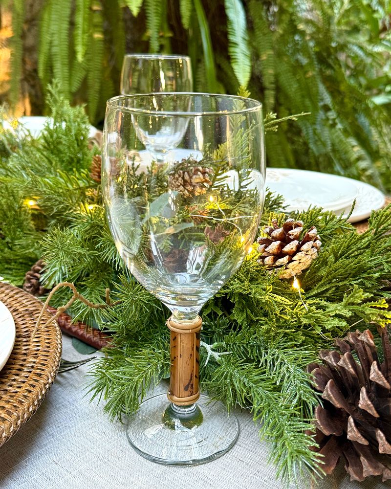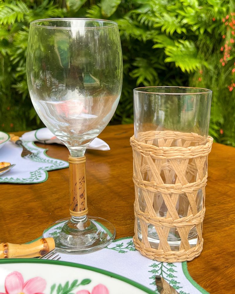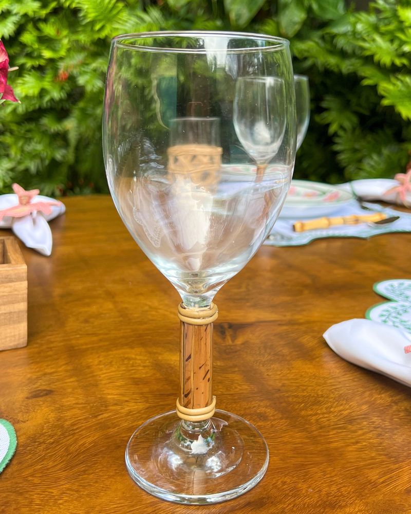Taça de água de vidro com pé de bambu natural. Vendida a unidade.