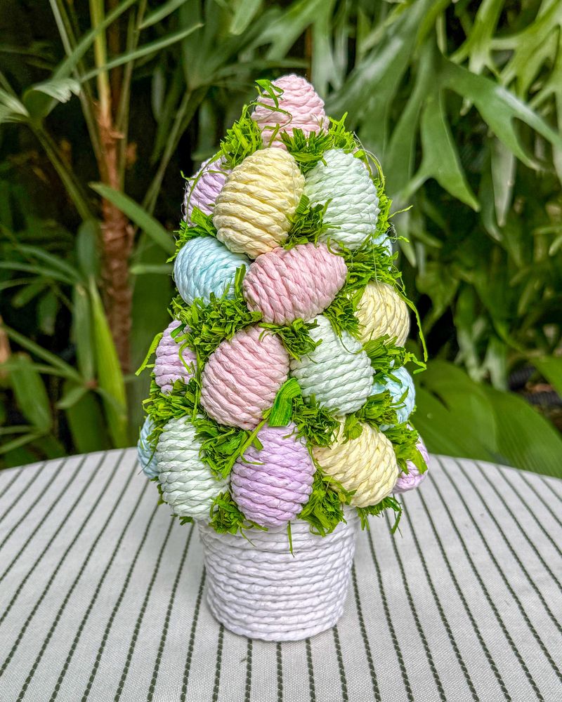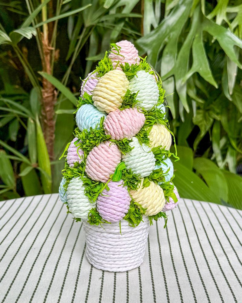 Topiaria 25cm ovos de linha com vaso branco - Páscoa 2026