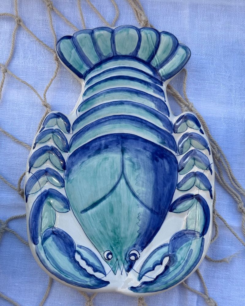 Travessa em cerâmica formato lagosta medindo 23cm de comprimento x 15cm de largura