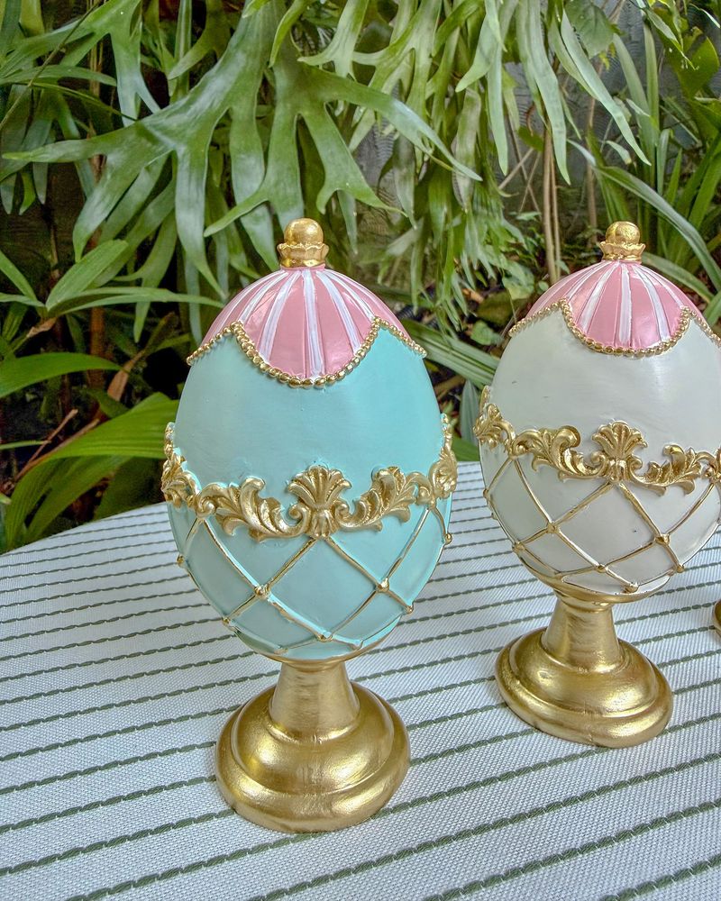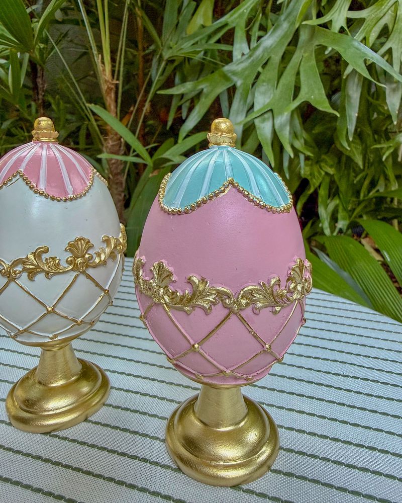 Trio de ovos Faberge decorativos Páscoa 2026
