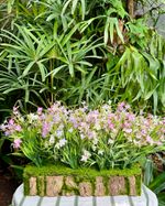 Tronco decorado com mini flores nas cores rosa, pink, branco e lilás.