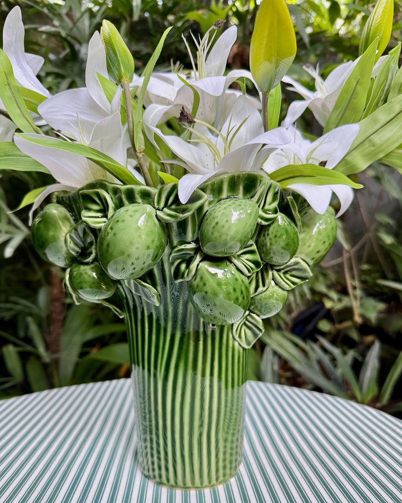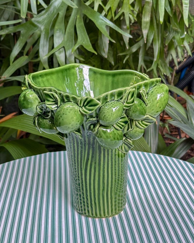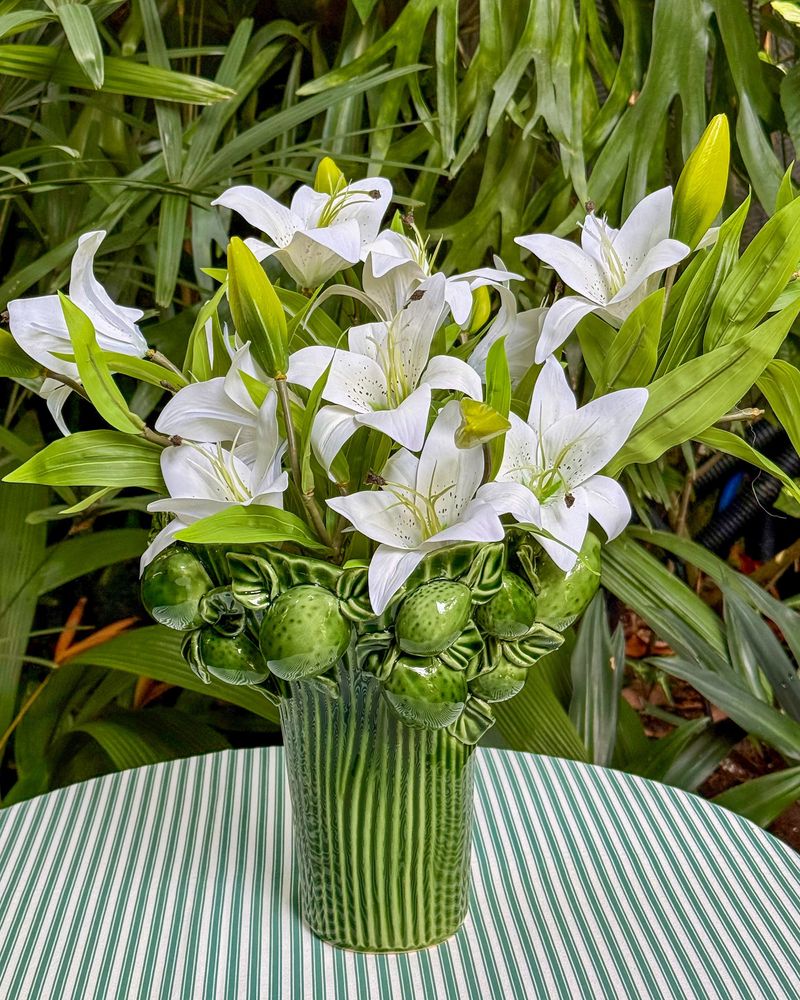 Vaso alto em ceramica em relevo medindo 24cm de diâmetrox 26cm de altura